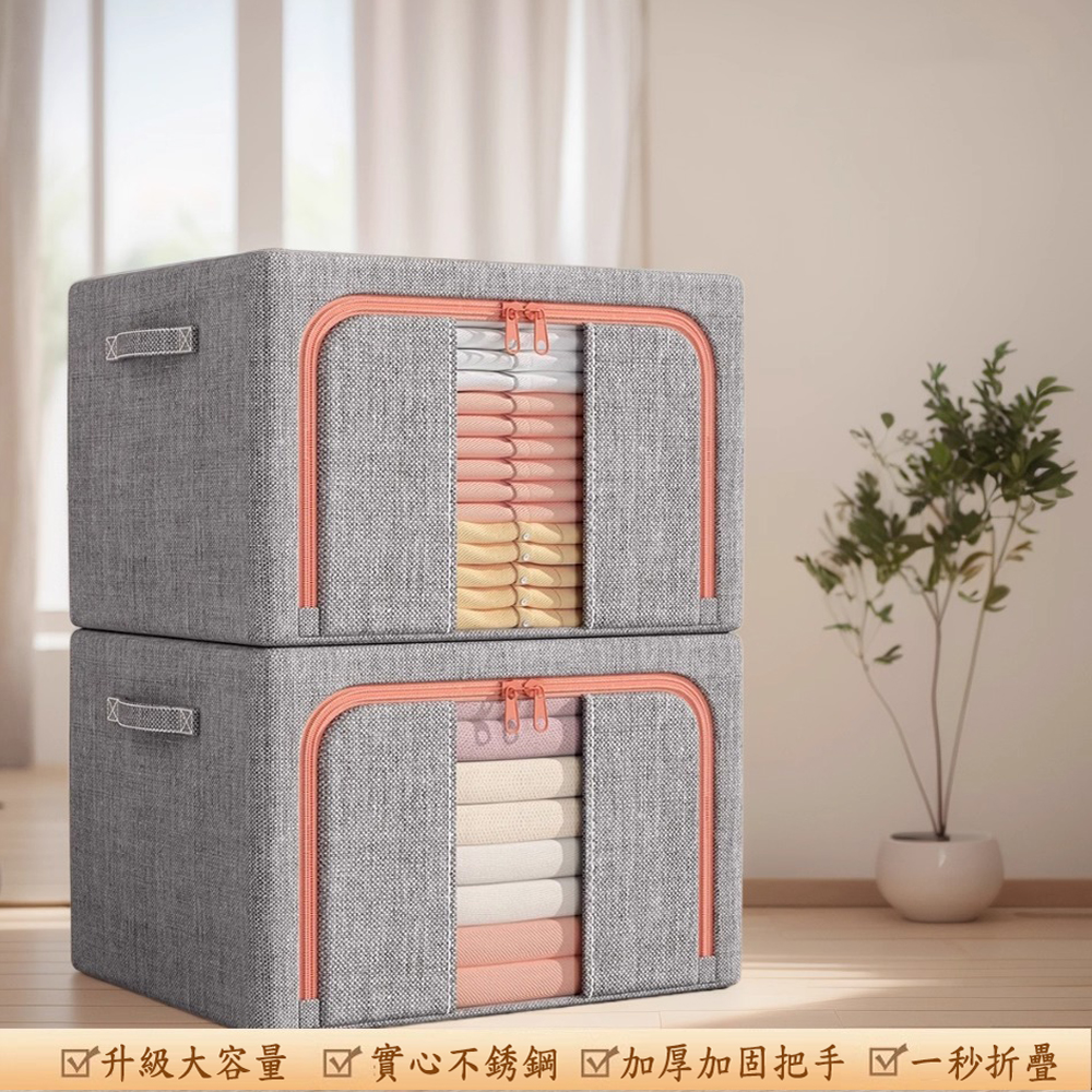 日式 牛津布 四周鋼架衣服收納箱