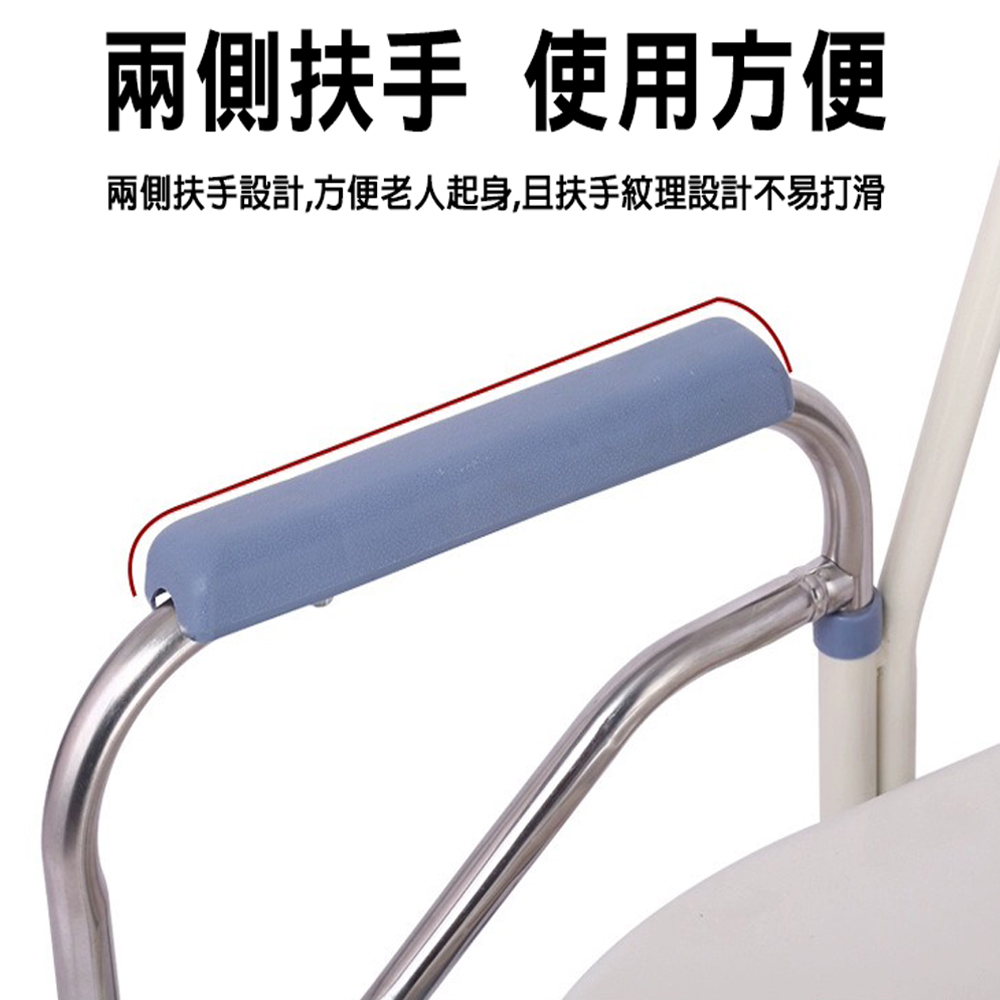 不鏽鋼雙扶手可移動防水折疊坐便椅五檔可調高度