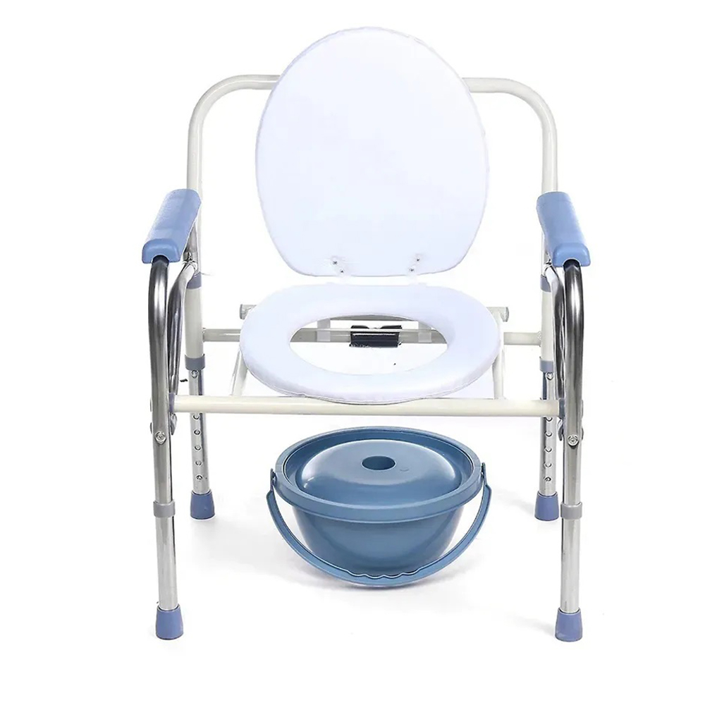 Stainless steel double armrest movable waterproof folding toilet chair with five height adjustments. Suitable for the elderly and pregnant women. Portable toilet/toilet chair.