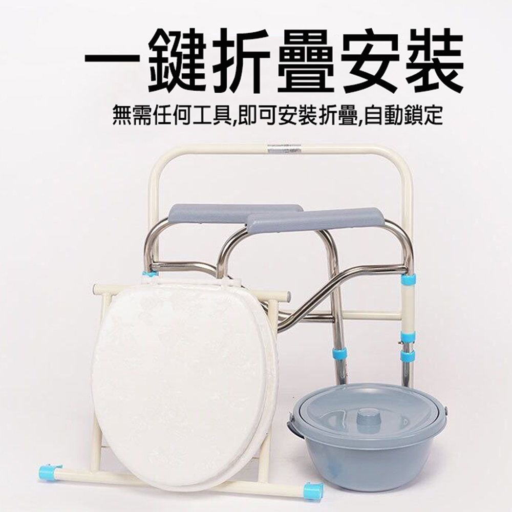 可折疊、帶扶手方便使力、舒適軟坐墊、活動便盆坐便器雙重作用