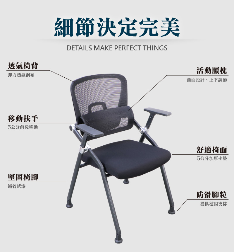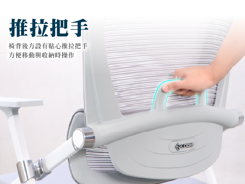 椅背後方設有貼心推拉把手,方便移動與收納時操作。