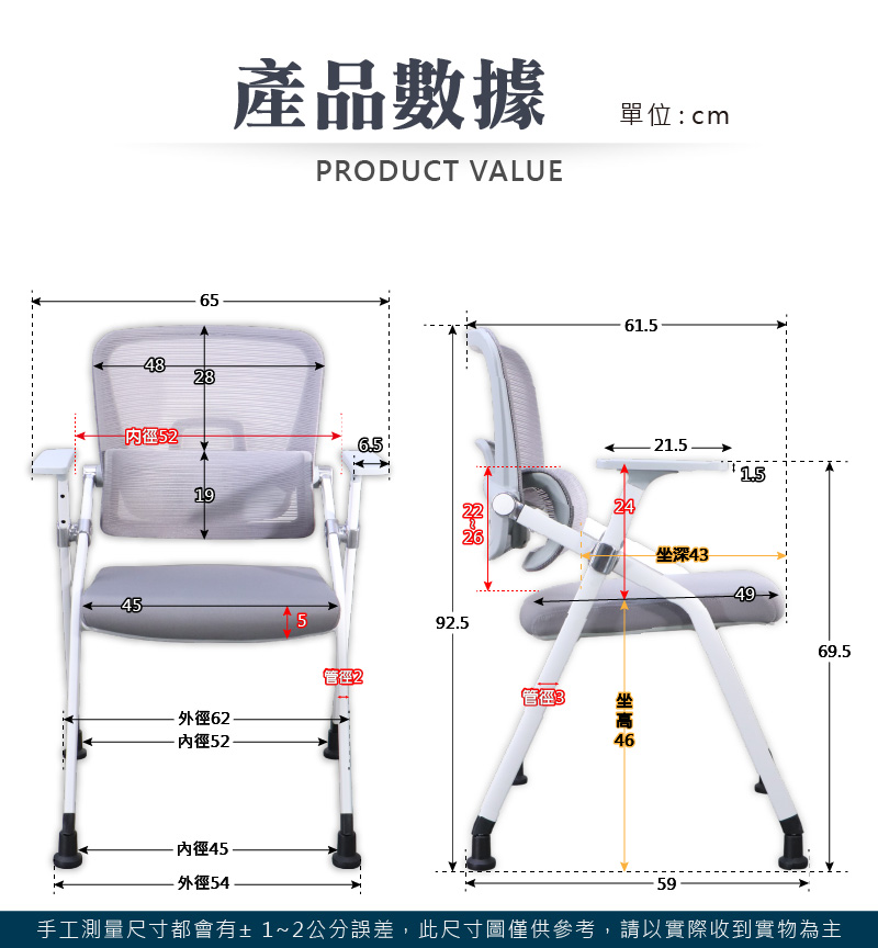 扶手外寬65cm、扶手內寬52cm、扶手到坐墊24cm