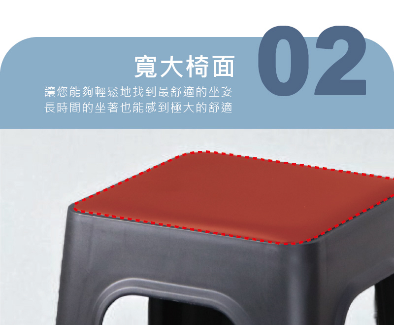 ★皮革坐墊椅面附PU皮革包覆高密度泡棉,坐感Q彈舒適。★寬大椅面寬大椅面,讓您能夠輕鬆地找到最舒適的坐姿,長時間的坐著也能感到極大的舒適。★乘坐穩固 | 耐重達150kg座面底部交叉結構,提供了強大的結構穩定性和承載能力,有效分散重量。★防滑腳墊防滑設計提高穩定性、防滑,防止磨損地板,提供更好的地面附著力。★耐摔抗壓、高柔韌性使用堅固PP塑膠,經久耐用,不易斷裂損壞,耐用性極高。★重複疊加、方便收納輕量化設計拿取、使用與收納不費力,節省空間,方便日常使用和收納。