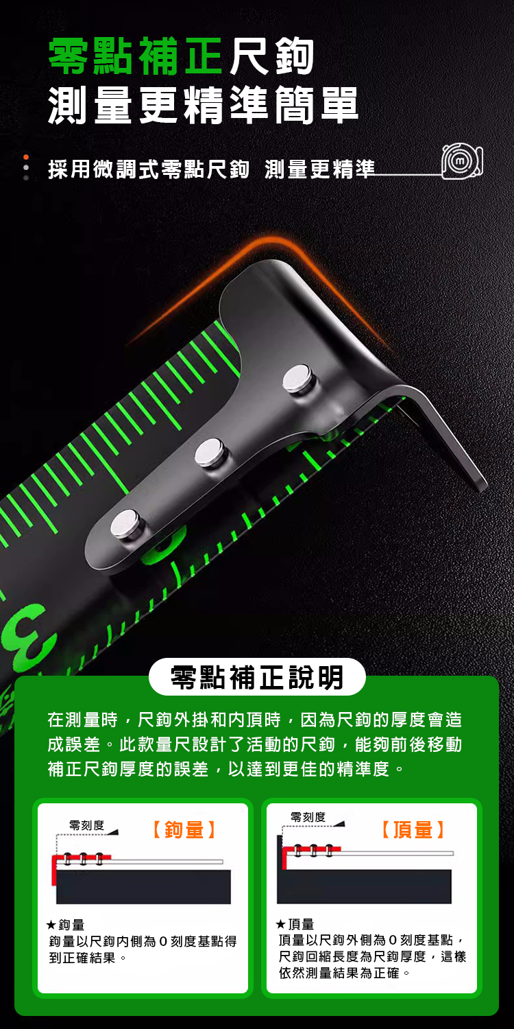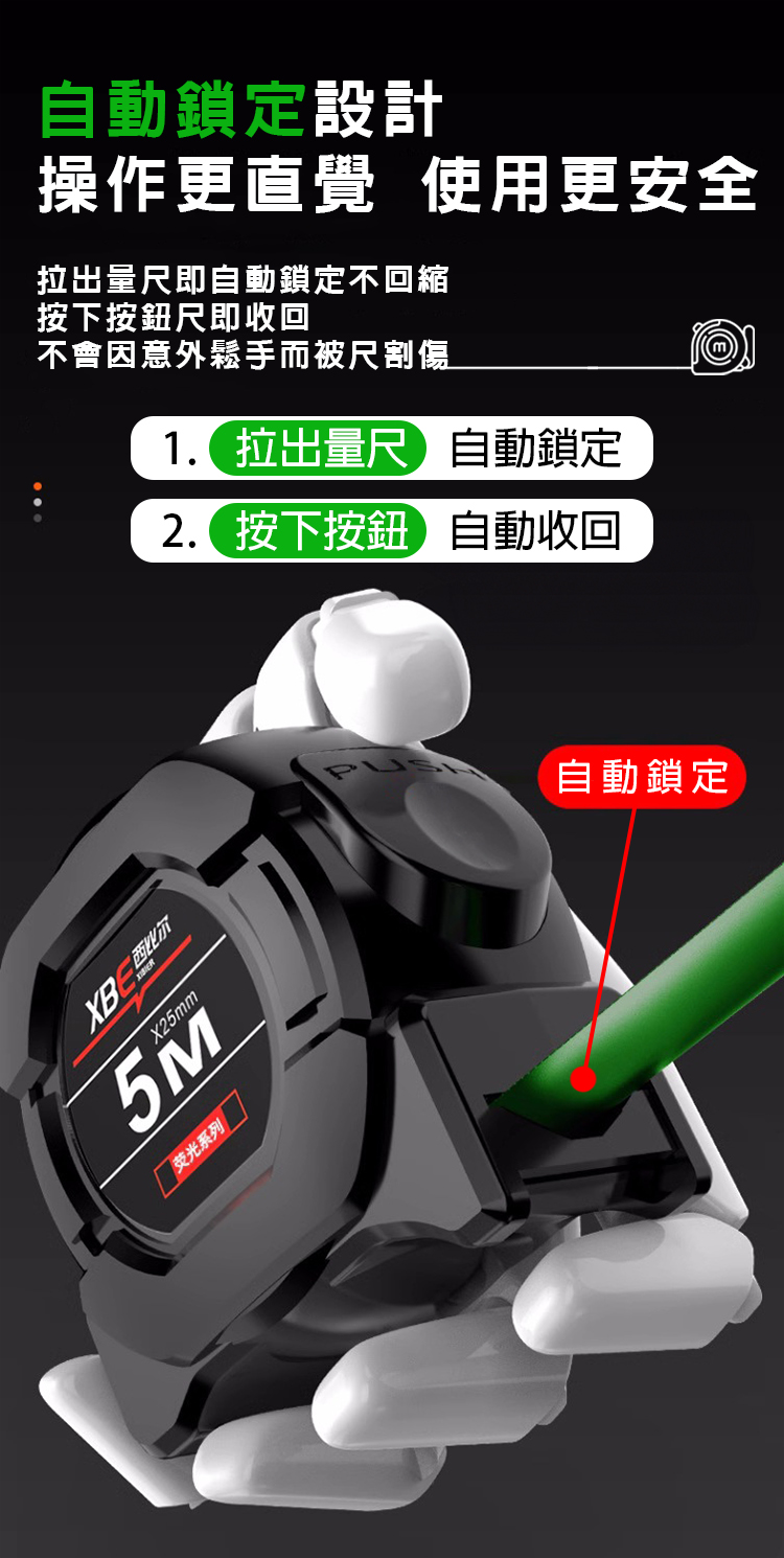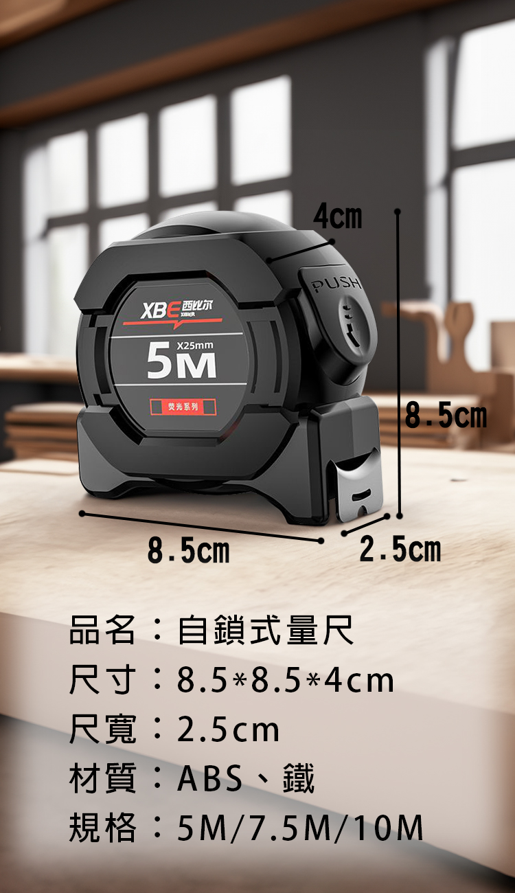 採用最新黑科技的自鎖式螢光捲尺不僅加長至10米,更具備零點補正功能確保每次測量的精確性完美滿足您的各種測量需求現在,您可以輕鬆處理各種測量工作並確保結果的精準性【產品信息】品名:自鎖式量尺尺寸:8.5*8.5*4cm尺寬:2.5cm材質:ABS、鐵規格:5M / 7.5M / 10M