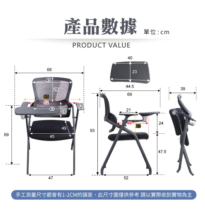 坐高47.5 cm、坐寬45cm、座深44cm、座墊49cm