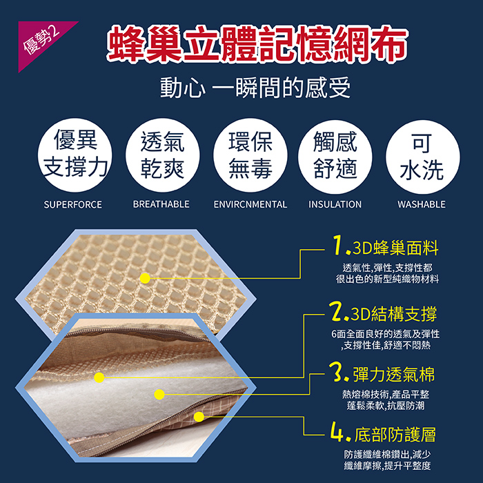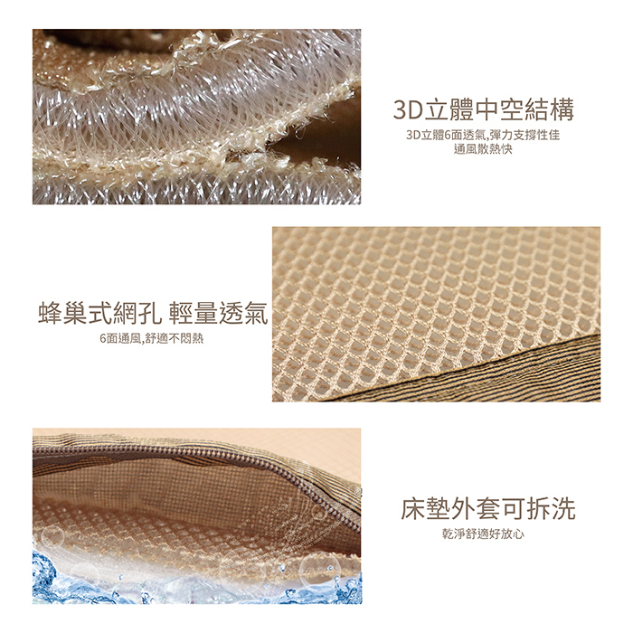 ★台灣製造,品質保證★3D立體結構設計,良好支撐透氣更舒適★5cm最剛好的厚度★三折疊設計,方便收納★可拆洗,抑菌潔淨好安心