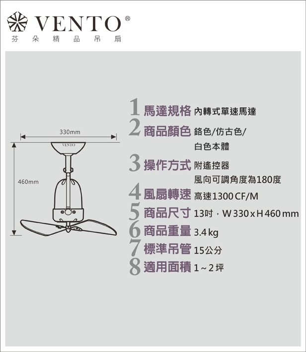 【VENTO】 FINO 13"-small ceiling fan with oscillate design