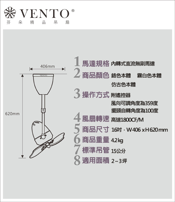 【VENTO】 FINO3 16"-DC small ceiling fan with oscillate design