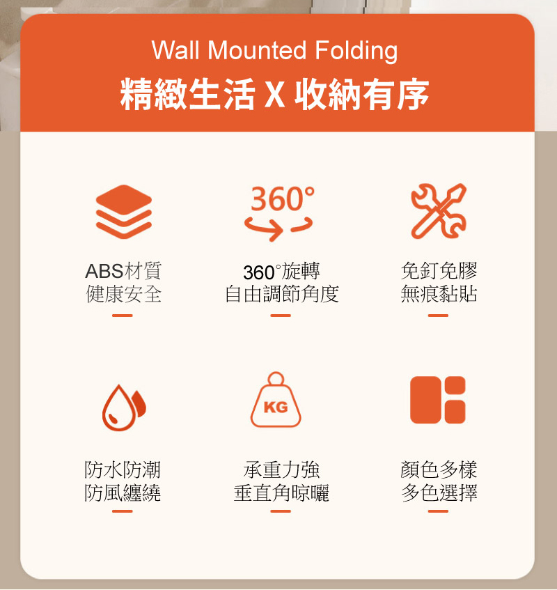 ● 可折疊設計,垂直角晾曬