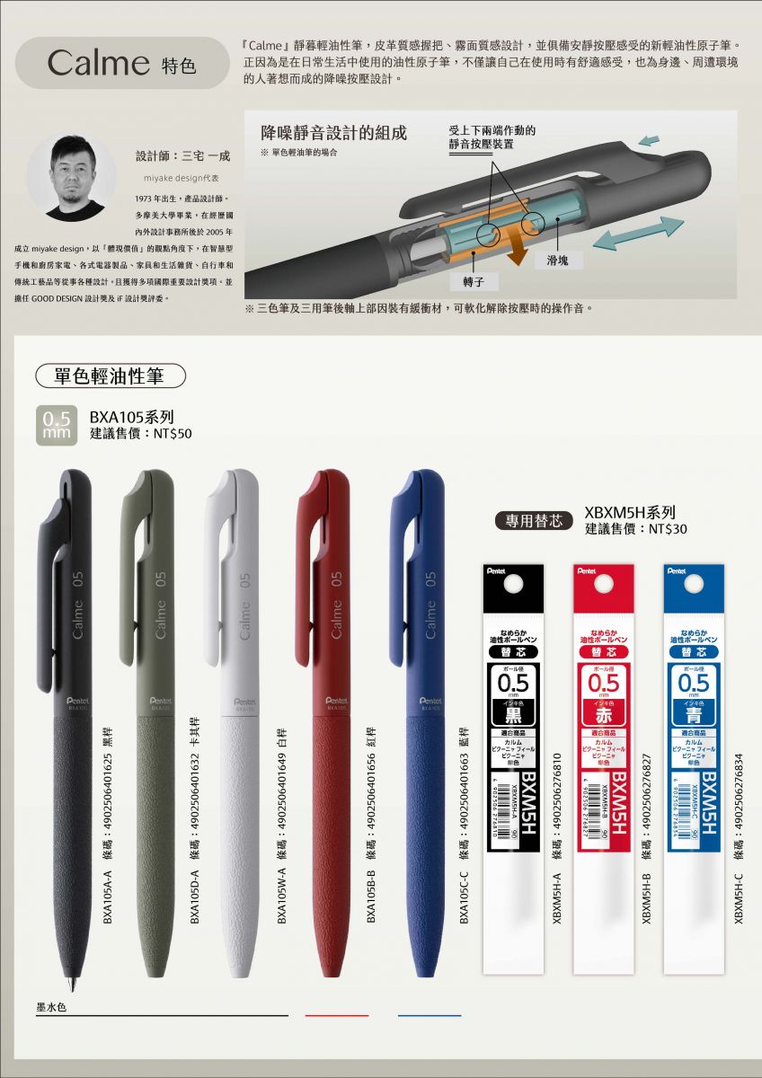 【 Pentel 飛龍 】 Calme靜暮 單色輕油性筆 0.5mm /支 BXA105 - 多款可選