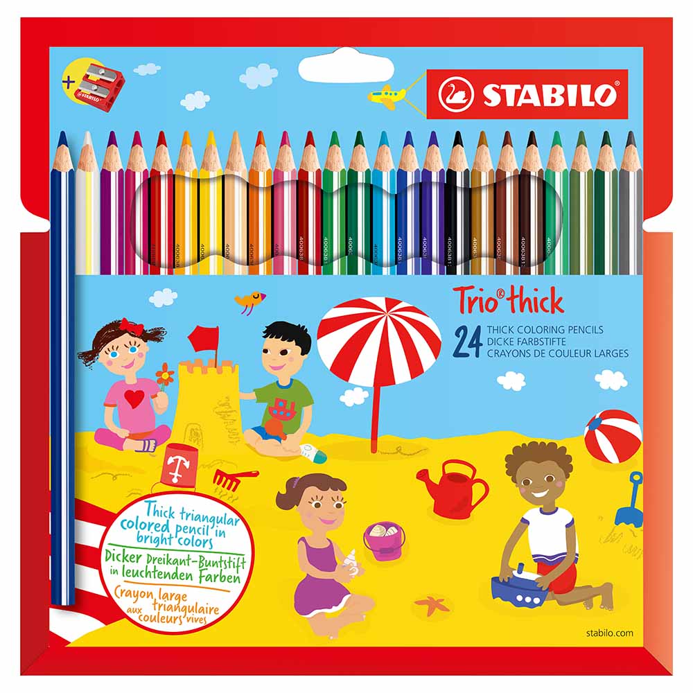 STABILO 德國 思筆樂 Trio thick 繽紛樂三角筆身油性色鉛筆(內含專用削筆器) 紙盒 24色組 / 盒 ST203/2-24