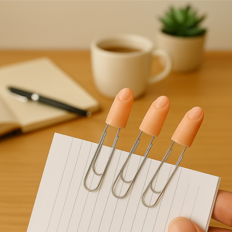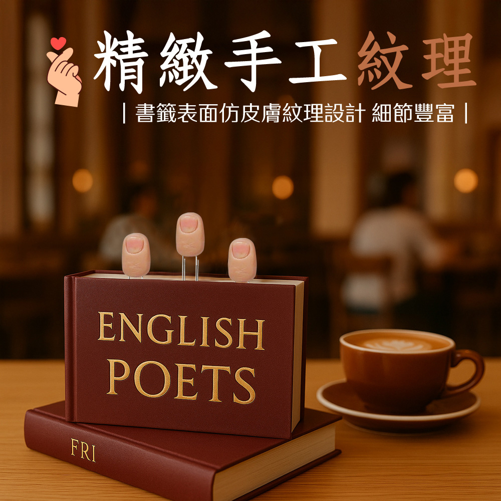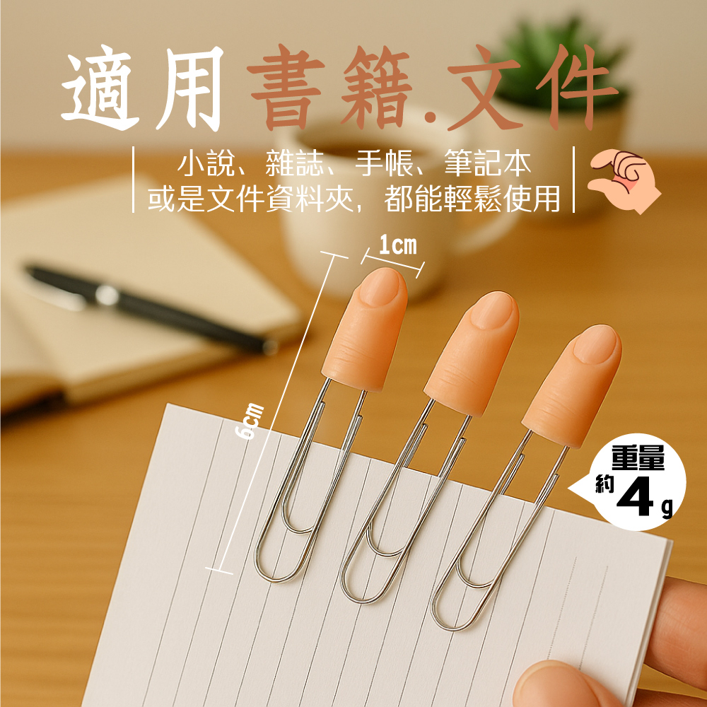 這款「指尖探險家」手指頭書籤是一款融合創意與實用性的閱讀小幫手,外觀設計靈感源自人類最靈活的工具—手指。栩栩如生的指尖造型搭配金屬迴紋針,夾在書頁間就像有一隻可愛小手從書中探出,彷彿為枯燥的文字增添了一絲生命力與趣味,讓閱讀變得更加生動有趣!✨ 產品特色趣味造型:仿真手指設計,創意感十足,使用時就像有一隻小手從書頁探出精緻質感:表面仿皮膚紋理設計,細節豐富,呈現自然生動的手指質感安全夾取:高強度金屬迴紋夾,牢固不滑動,不傷書本頁面輕巧便攜:超輕4g重量,隨身攜帶毫無負擔,輕鬆放入書袋或筆袋多種膚色:多種色系隨機出貨廣泛適用:適合各類書籍、雜誌、手帳、筆記本或文件資料夾📏 商品規格商品尺寸:1 x 6 cm商品重量:4g商品材質:塑膠 + 金屬迴紋針包裝內容:1支🏠 適用場景閱讀標記:輕鬆標記閱讀進度,指尖自然指向重要內容學習輔助:快速找到筆記重點,提升學習效率辦公整理:為重要文件或資料夾做記號,一目了然創意裝飾:除實用功能外,還能作為書架或辦公桌的趣味裝飾拍照道具:獨特造型適合文創風格攝影,為社群分享增添亮點🎁 送禮推薦這款充滿創意的手指書籤是送給愛書人、文具控、學生、同事的療癒小禮物!每次翻開書頁,看到探出的小手指,都能為枯燥的閱讀時光帶來一絲微笑,傳遞你的貼心與巧思。✅ 指尖的創意,夾住閱讀的樂趣! ✅ 童趣與實用的完美結合,陪伴每一頁精彩故事!