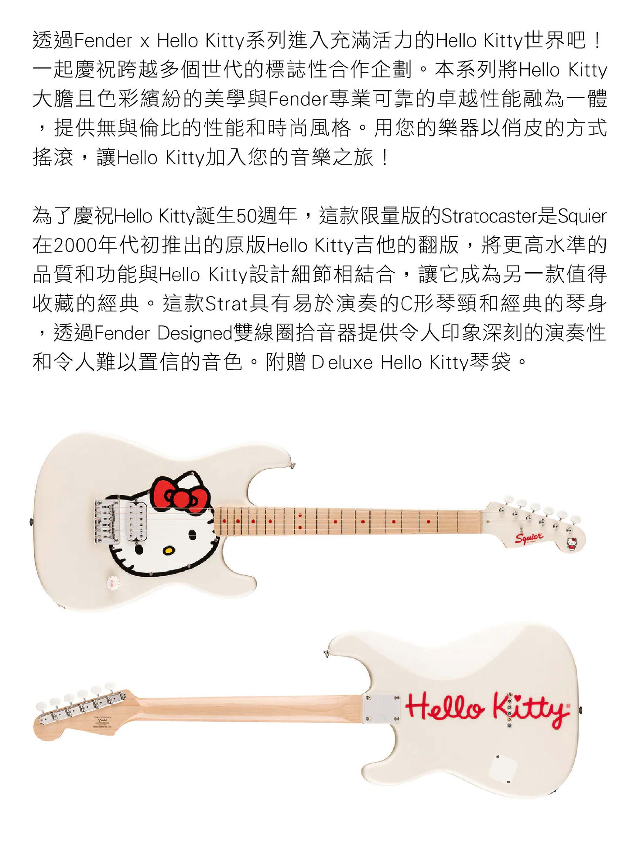 SQUIER SQ LTD HELLO KITTY STRAT 50TH ANNIVERSARY MN WH 聯名款電吉他