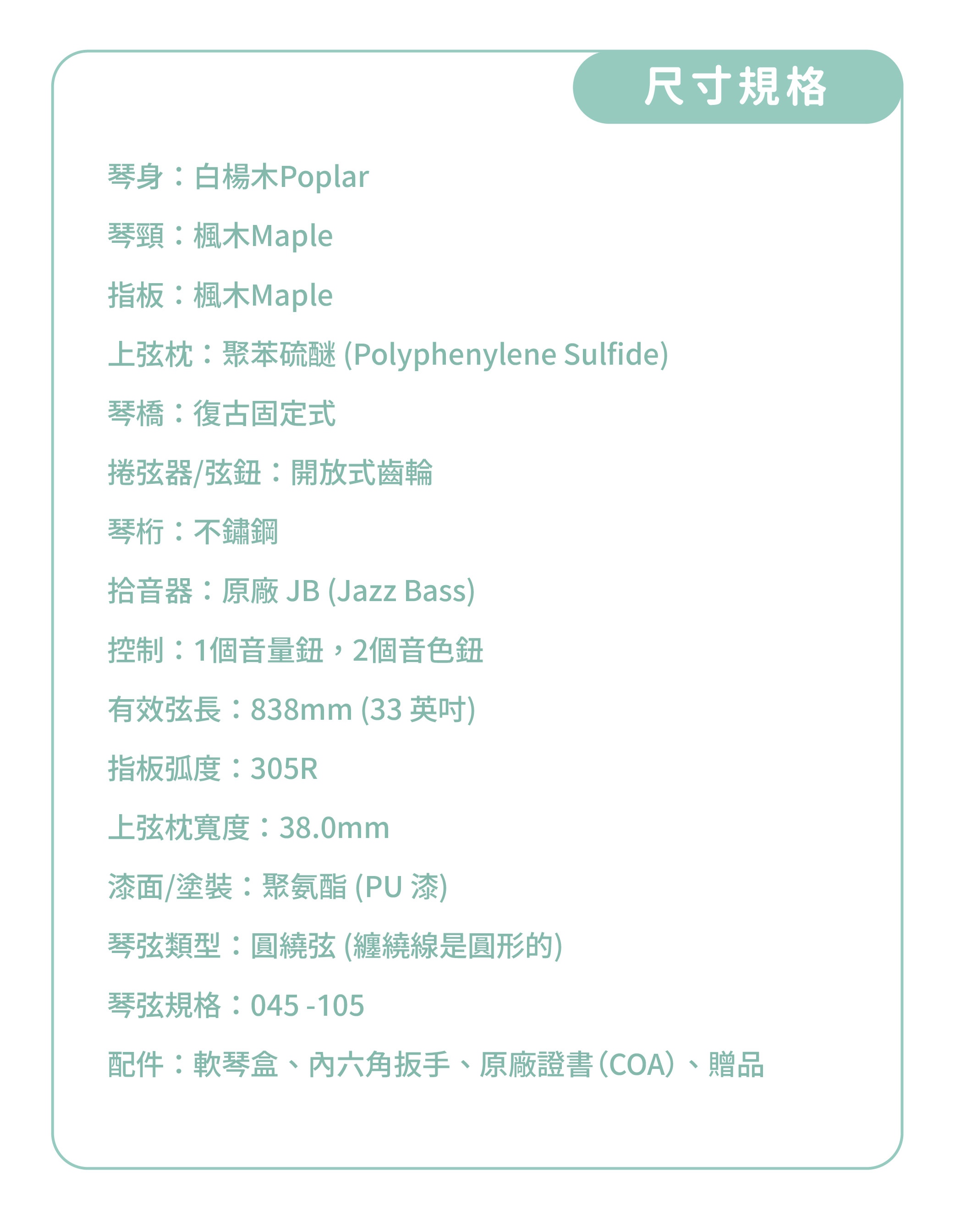 這把琴的設計核心,是實現「對初學者友善」與「專業演奏手感」的完美平衡,讓你的 Bass 之旅,從此輕鬆且出色。