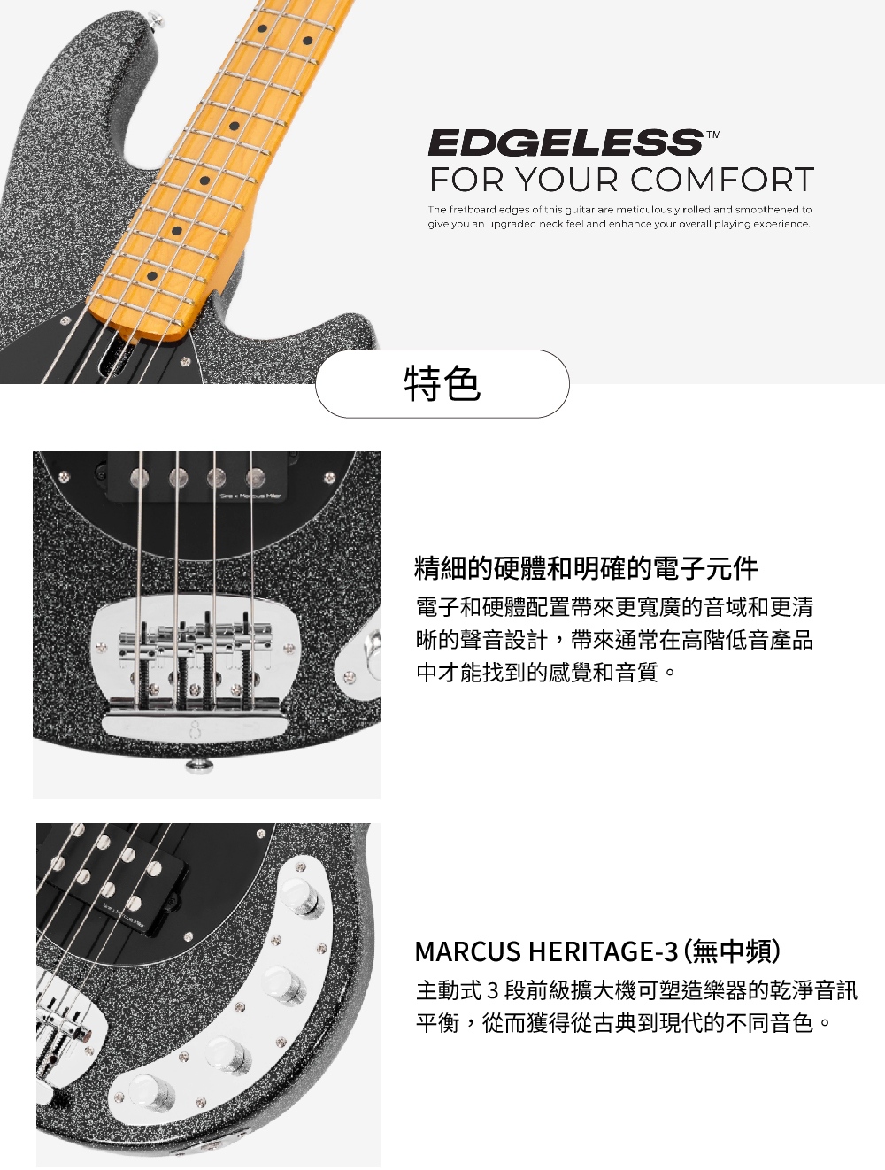 憑藉全新的 Z-bass 琴身、蛋形護板、Edgeless™ 無邊緣硬楓木琴頸,以及精細的電子元件和硬體配置,這款型號被認為是同等價位中最好的產品之一
