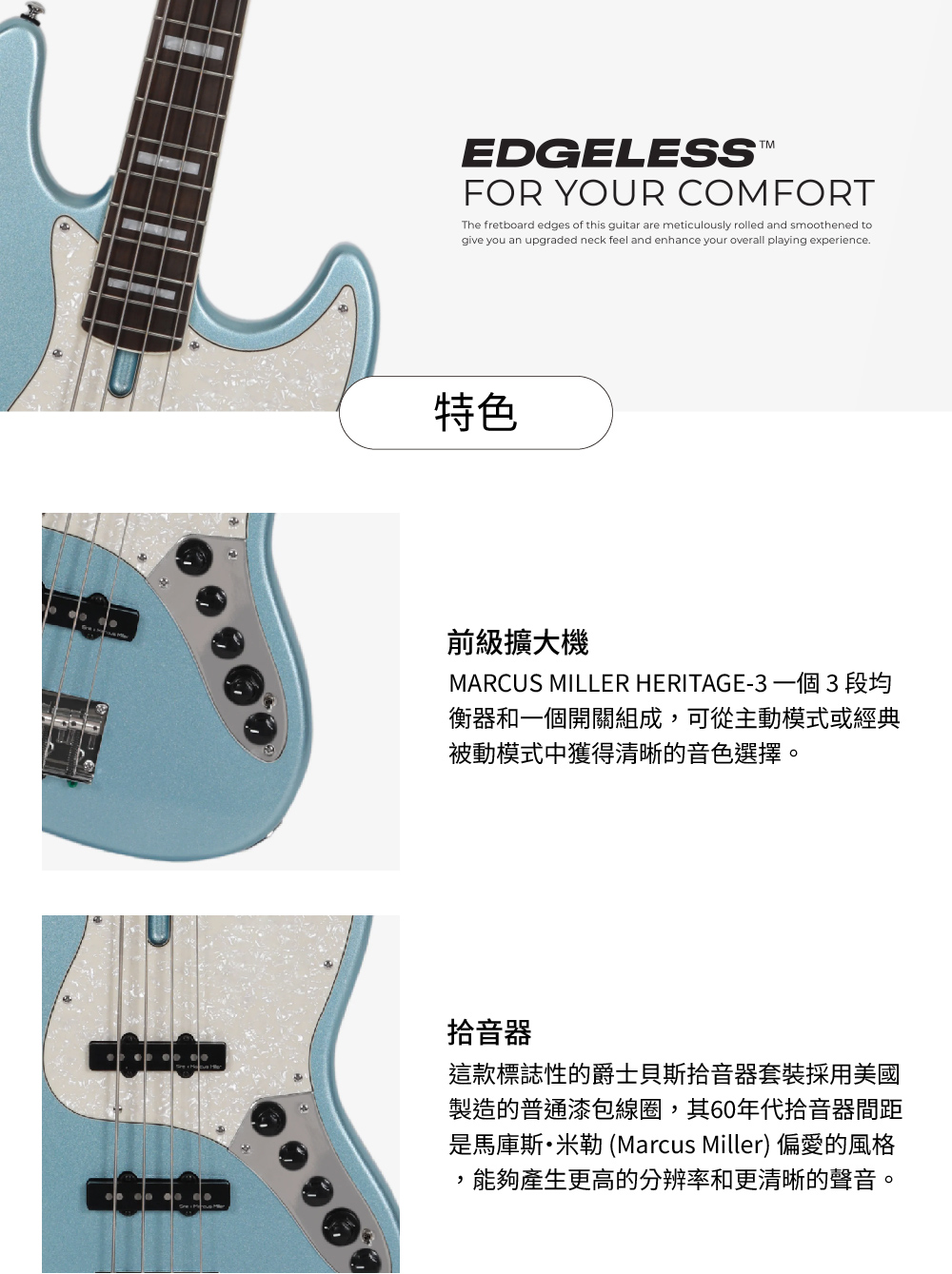 作為 Sire 貝斯的旗艦型號,V7 經過創新設計,旨在重現 Marcus Miller 的標誌性音色。它配備了多功能且簡潔的硬體與電子系統,適用於所有的演奏風格和技巧。這款型號採用耐用的琴身與琴頸材料,搭配圓邊指板(rolled fretboard edges),可以成為您的主要演奏用琴(go-to bass)。它出廠時配備了 DR Dragon Skin+DBQ-45 貝斯弦。