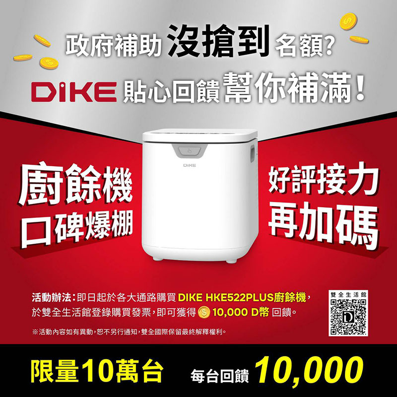 DIKE 3.5L淨味儲存智能廚餘機-升級款 /台 HKE522PLUS 贈瞬熱式飲水機+行動電源