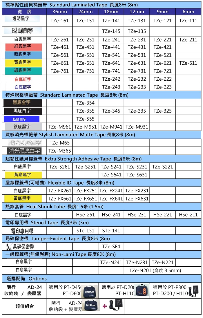商品規格 尺寸:9mmx8M 顏色:白底黑字 類別:標準黏性護貝型 適用機型: 所有P-touch 支援列印寬度 9mm 以上之標籤機,含PT-H110、PT-D200SN、PT-D200DR、PT-P300BT、PT-P710BT、PT-P910BT、PT-D450、PT-D600、PT-P700、PT-P750W、PT-P900W、PT-P950NW、PT-E300VP、PT-E550WVP、PT-E800T、PT-E850TKW等。 9mm TZe護貝標籤帶,防水耐磨擦,耐高低溫、紫外線與化學藥劑,經由Brother科技團隊精心研發,高品質材質與黏膠,不傷害機器裁刀與黏貼表面。 特別注意:下訂單前請先確認型號。 鑑賞期說明 依據消費者保護法第十九條規定,提供七天猶豫期(非試用期)的權益,退貨商品必須是與出貨狀態相符且完整包裝(包含主機、附件、隨附文件、內外包裝、贈品等),並以原包裝紙箱將退貨商品包裝妥當。 以下商品不享有七天猶豫期服務: 1.易於腐敗、保存期限較短或解約時即將逾期。 2.依消費者要求所為之客製化給付。 3.報紙、期刊或雜誌。 4.經消費者拆封之影音商品或電腦軟體。(如影音/遊戲光碟、電腦軟體、CD、DVD、VCD等)。 5.非以有形媒介提供之數位內容或一經提供即為完成之線上服務,經消費者事先同意始提供。 6.已拆封之個人衛生用品或消耗性商品(如墨水、碳粉匣等)。 廠商代號:JV2 責任代號:5UX