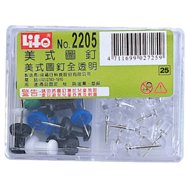 型號:NO.2205 貨號:027259 規格:美式圖釘 15支入‧美式透明圖釘 15支入廠商代號:XZ責任代號:5UX