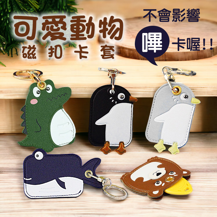 【產品訊息】品名:動物造型卡套材質:PU皮革、五金尺寸:大象/鯨魚/黑馬-9.3*6 cm 綠鱷魚/黃鱷魚-7.5*7.2 cm 三色企鵝-7.2*5 cm 棕熊/綠青蛙-5.5*6.3 cm厚度:約3mm重量:約13~17g