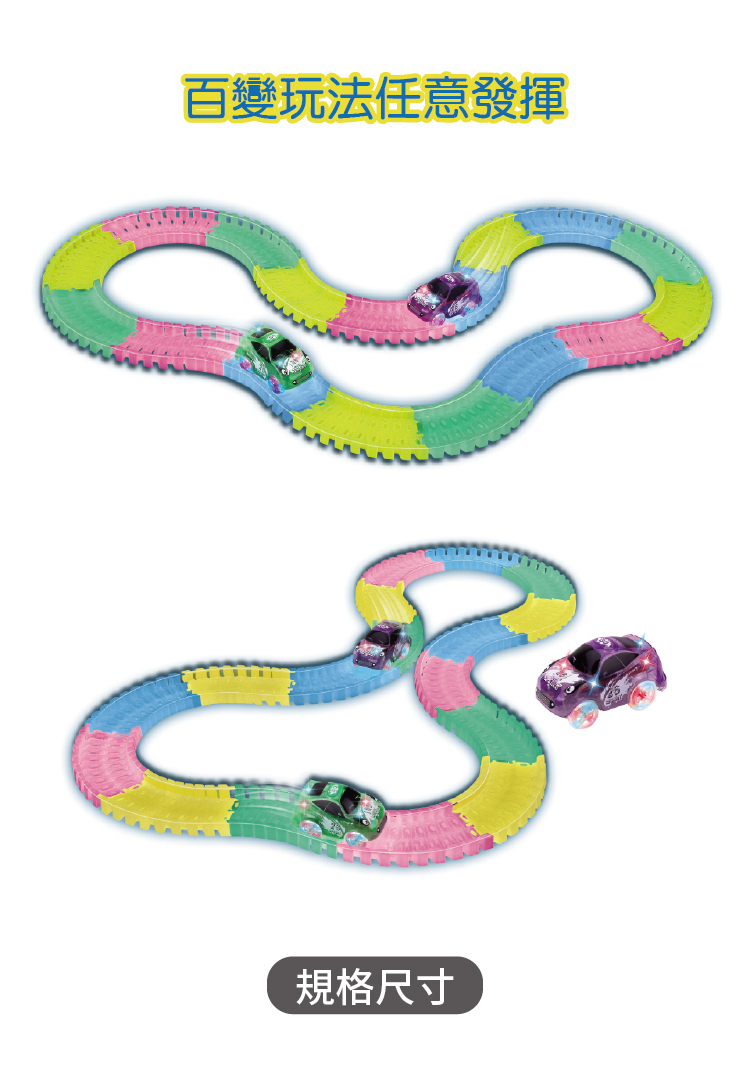 產品尺寸:車子x1台9.5x5x5.5cm 軌道x100片2.5x7cm