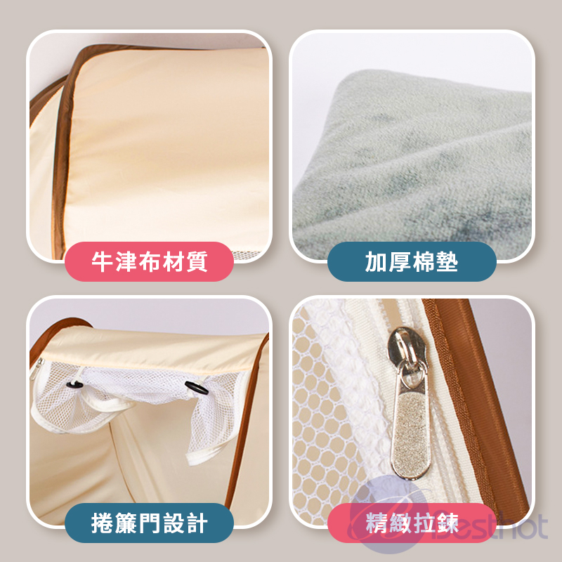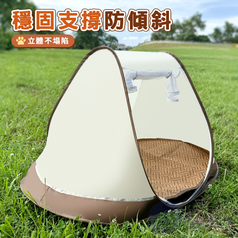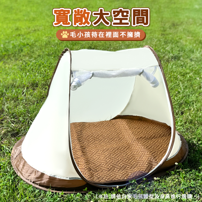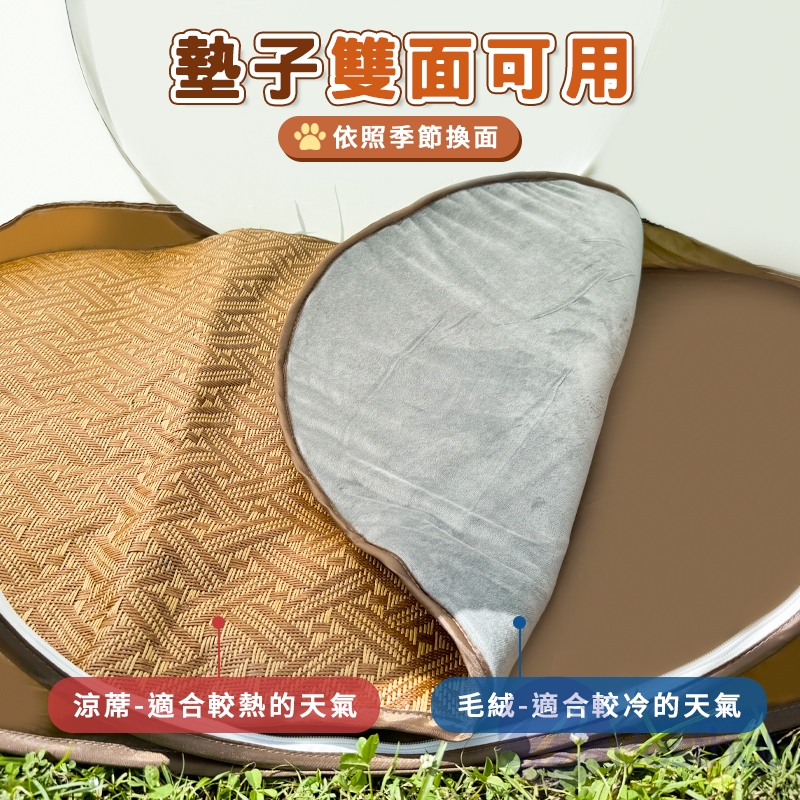 戶外居家兩相宜,一起享受露營趣; 底部寬敞大空間,就讓毛孩爽爽躺; 透明網紗門設計,不怕蚊蟲更通風; 貼心贈兩用墊子,夏涼冬暖超舒服。