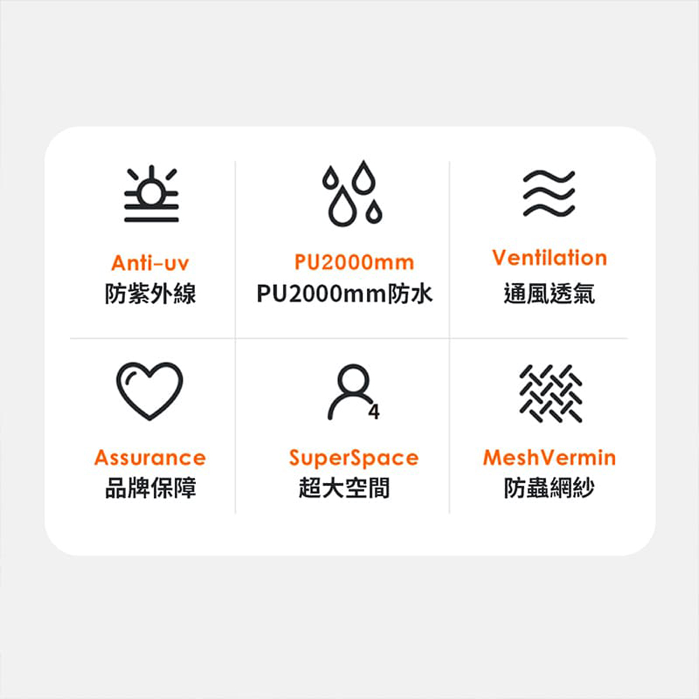 超通風透氣-前後兩門兩窗戶設計露營新手必備的秒開帳篷