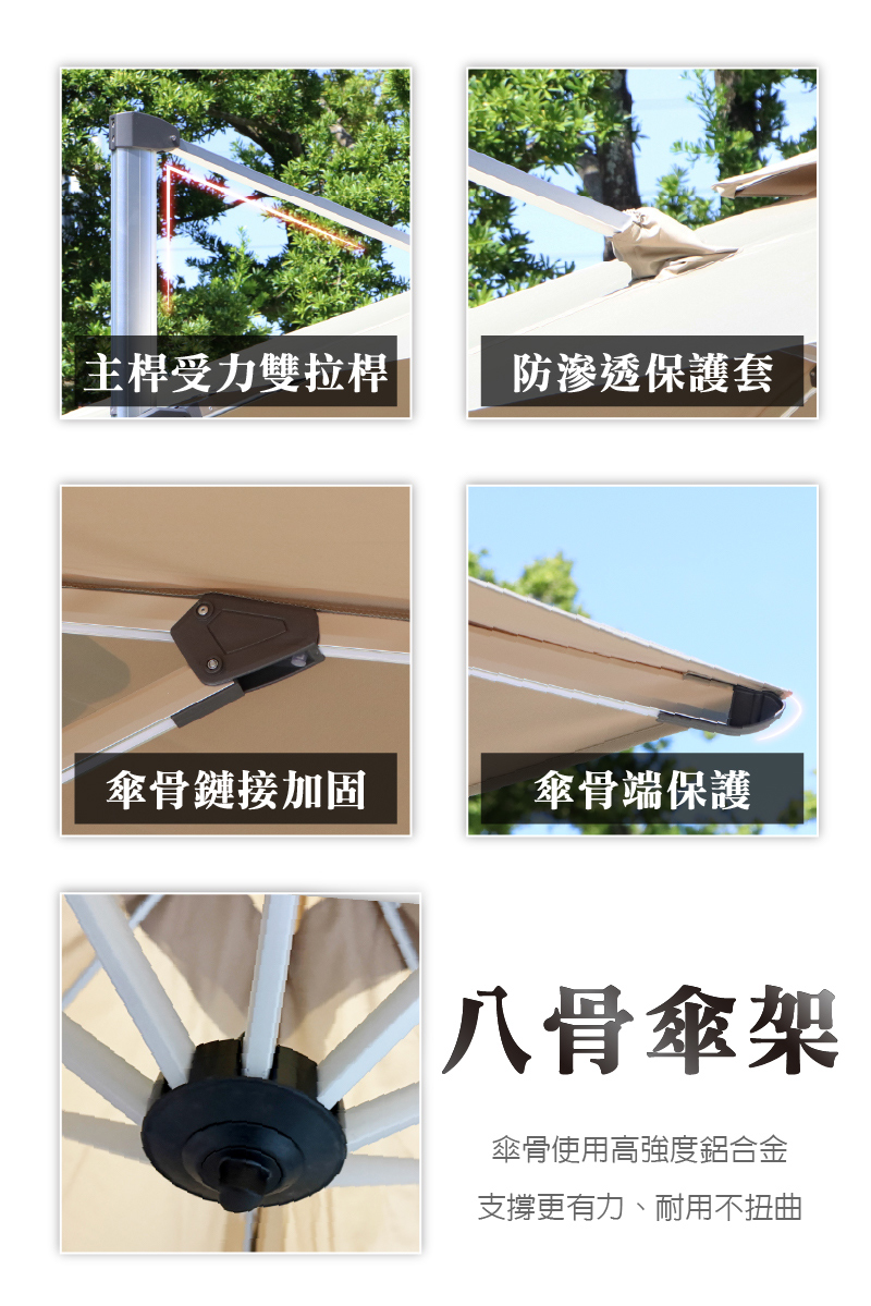 傘骨使用高強度鋁合金,支撐更有力、耐用不扭曲。