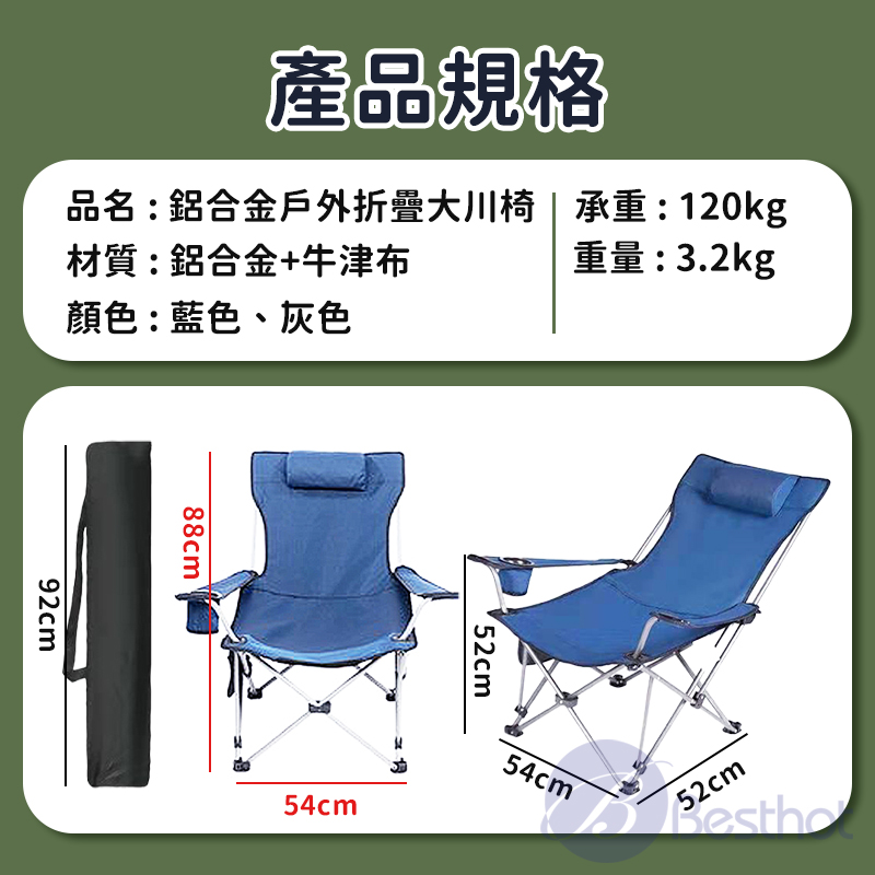 【Besthot】鋁合金戶外折疊大川椅-附枕頭、收納袋