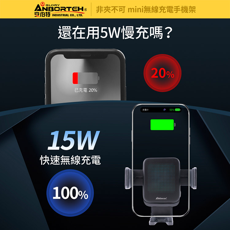 【安伯特】MINI無線充電手機架(搭配-冷氣口支架)