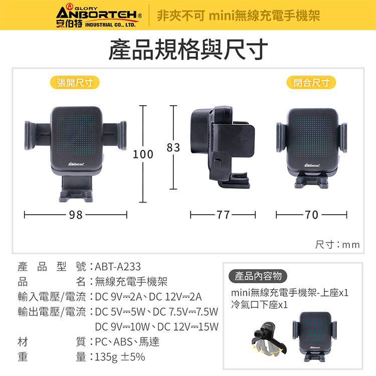 品名:【安伯特】MINI無線充電手機架(搭配-冷氣口支架)