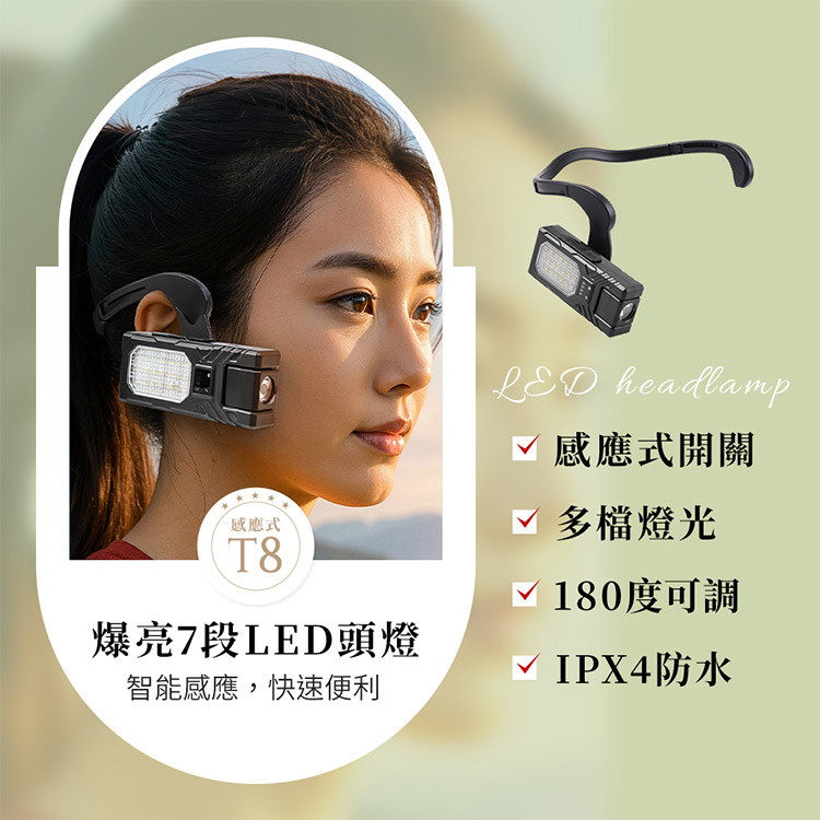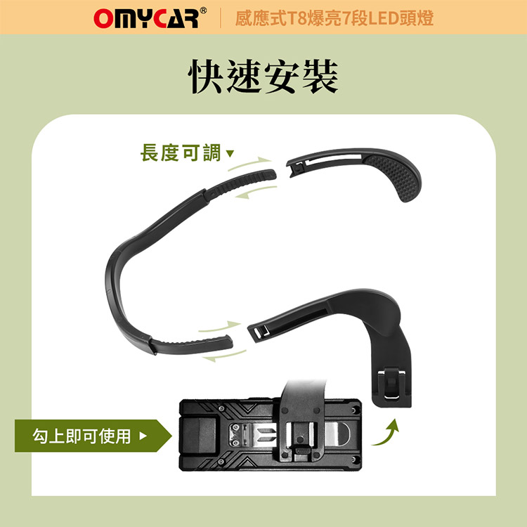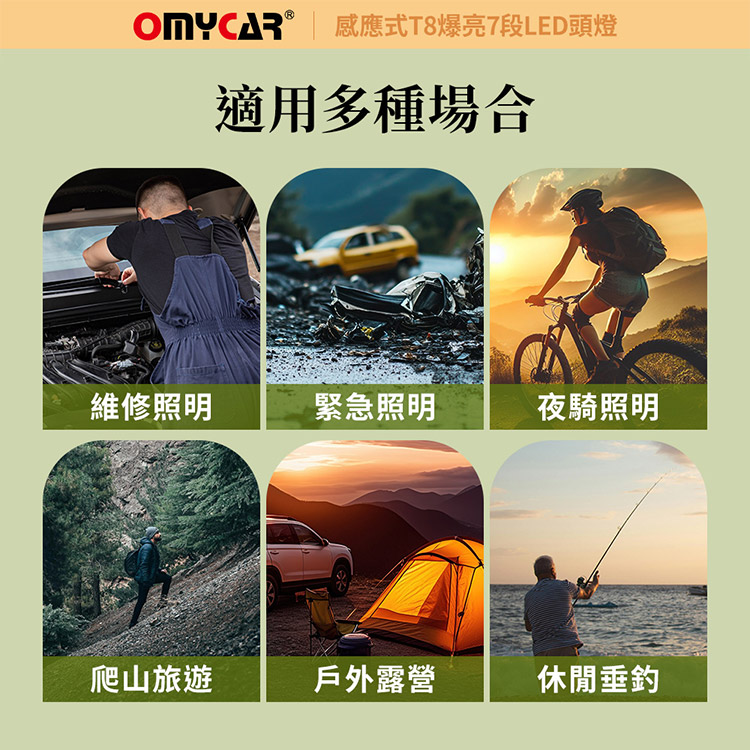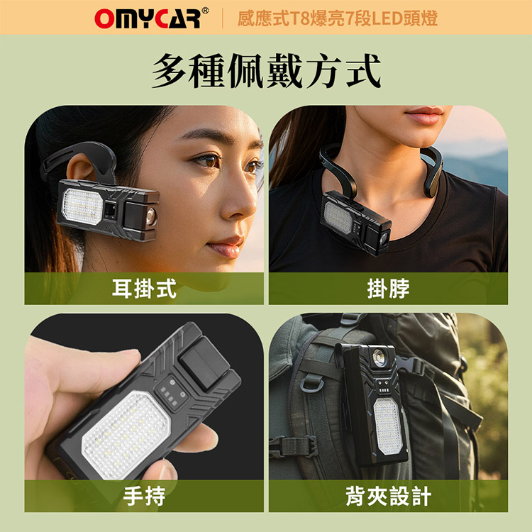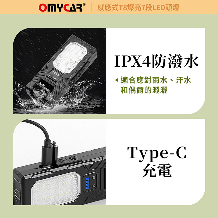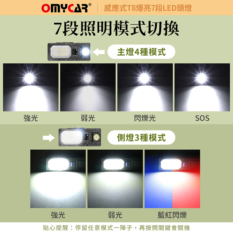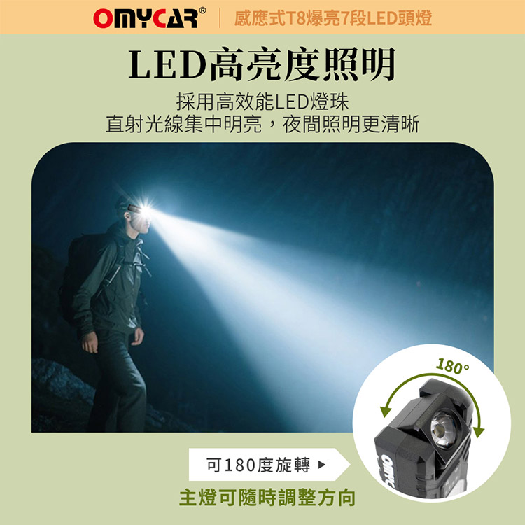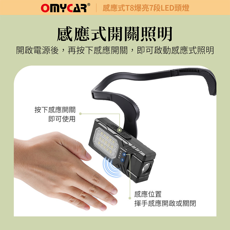 【OMyCar】感應式T8爆亮7段LED頭燈 (一年保固) 停電 超強光 釣魚頭燈 登山頭燈 工作燈