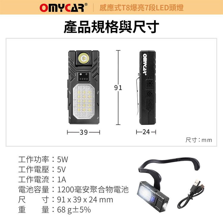 商品品名:【OMyCar】感應式T8爆亮7段LED頭燈