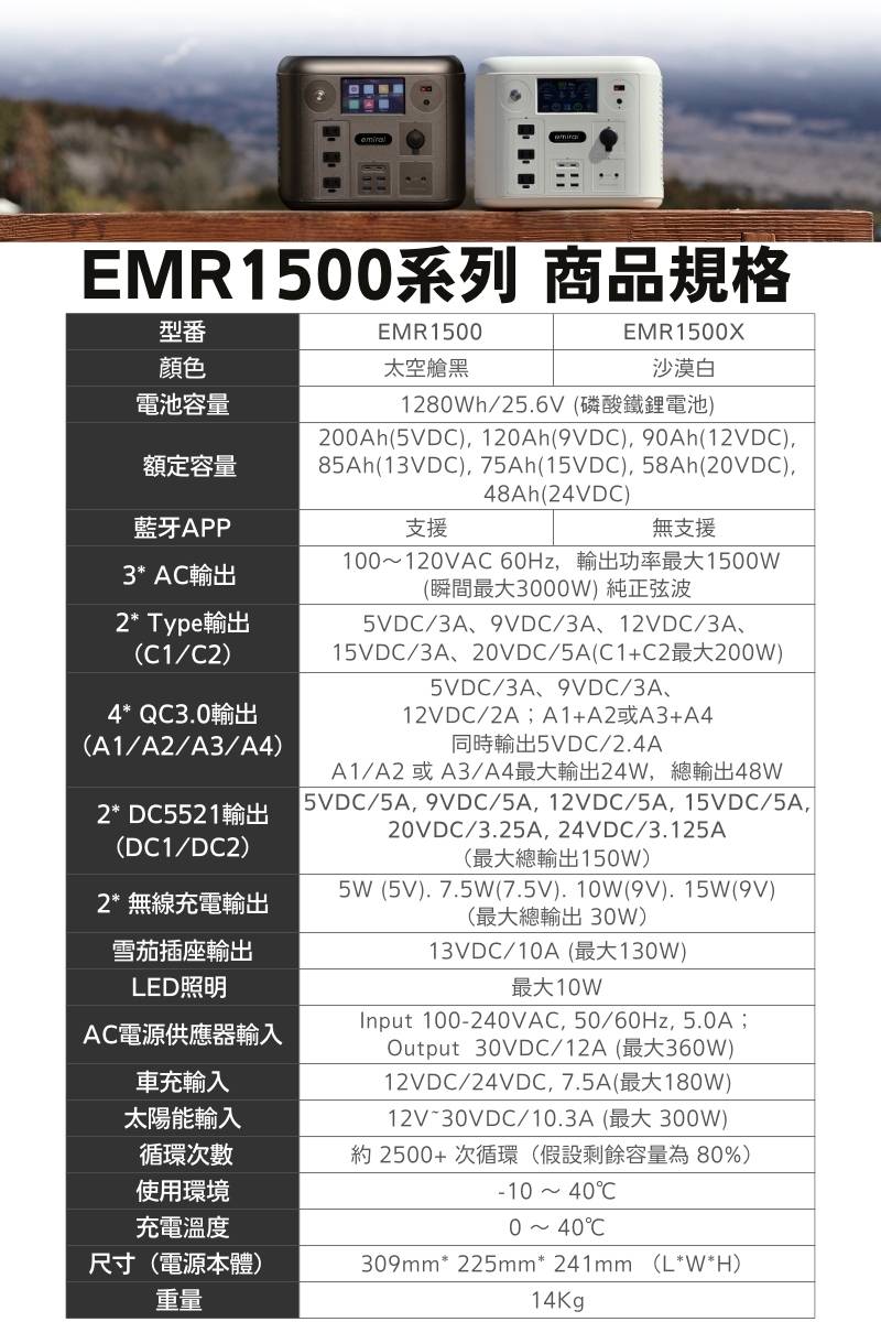 【emirai】Next Generation Action 1500W/1280Wh|EMR1500X|MIRENEX|Desert White