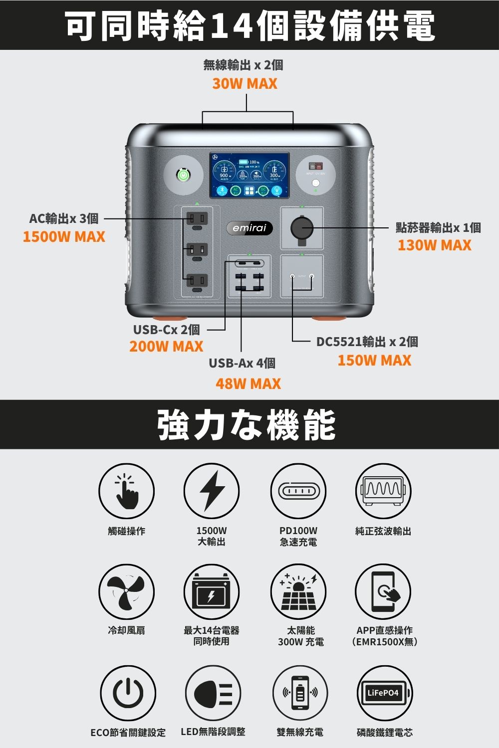 [emirai] EMR1500 Next-Gen Portable Power Station - Space Gray