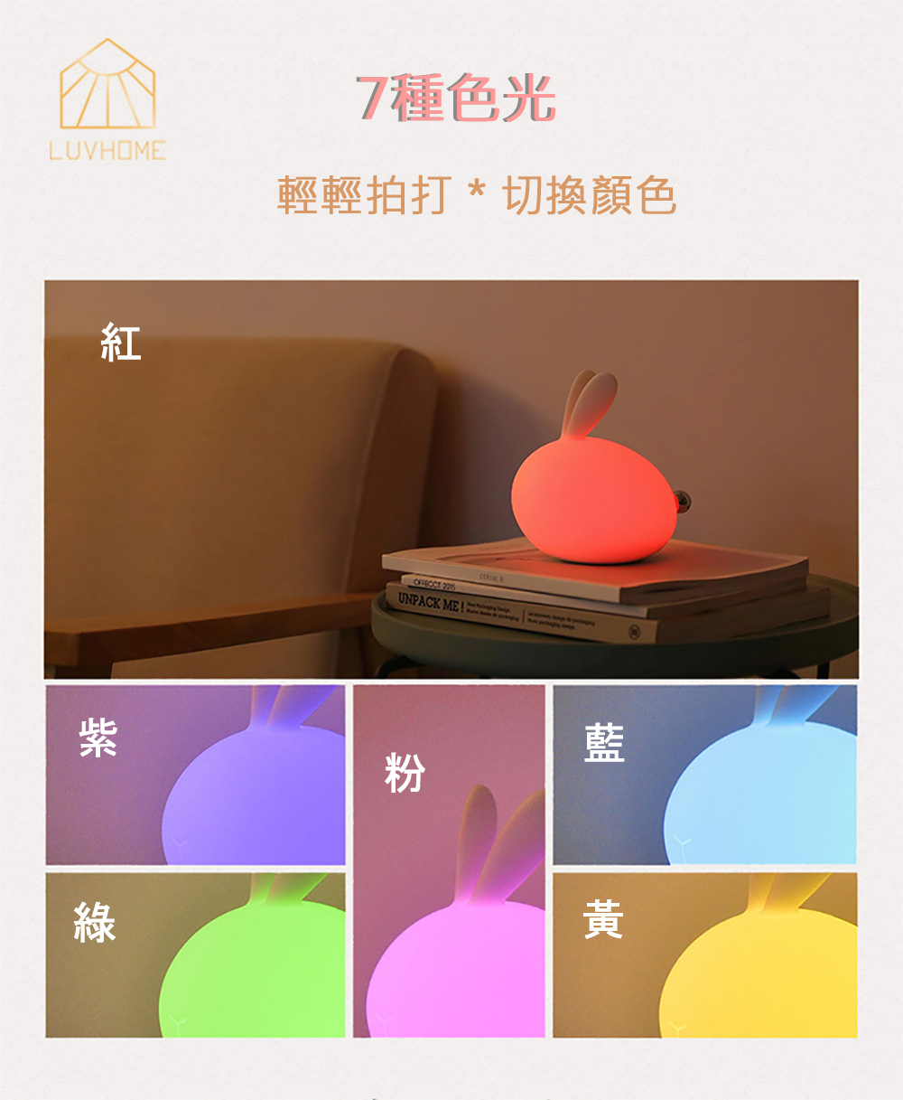 ※本產品共有七種不同色光,三種亮度,可依個人喜好調整。