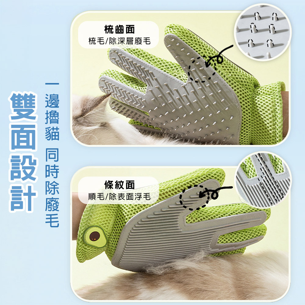 🐶/🐱:主人~你是不是又嫌我掉毛啦 🙈?別擔心!這款【雙面除毛手套】就是我的專屬美容師 ✨一面幫我按摩梳毛,深層廢毛通通帶走 💨另一面還能順毛、把浮毛清乾淨~毛毛不再滿天飛啦 🛋️而且矽膠軟軟的,好舒服喔~就像你在幫我按摩一樣 😻梳下來的毛毛還能整片撕掉,清理超方便 ✔️手套兩面還不同紋路一面可以梳我,另一面可以清家裡趕快準備一雙~~這樣我乾淨又舒服,家裡也清爽~主人你最棒啦 💕
