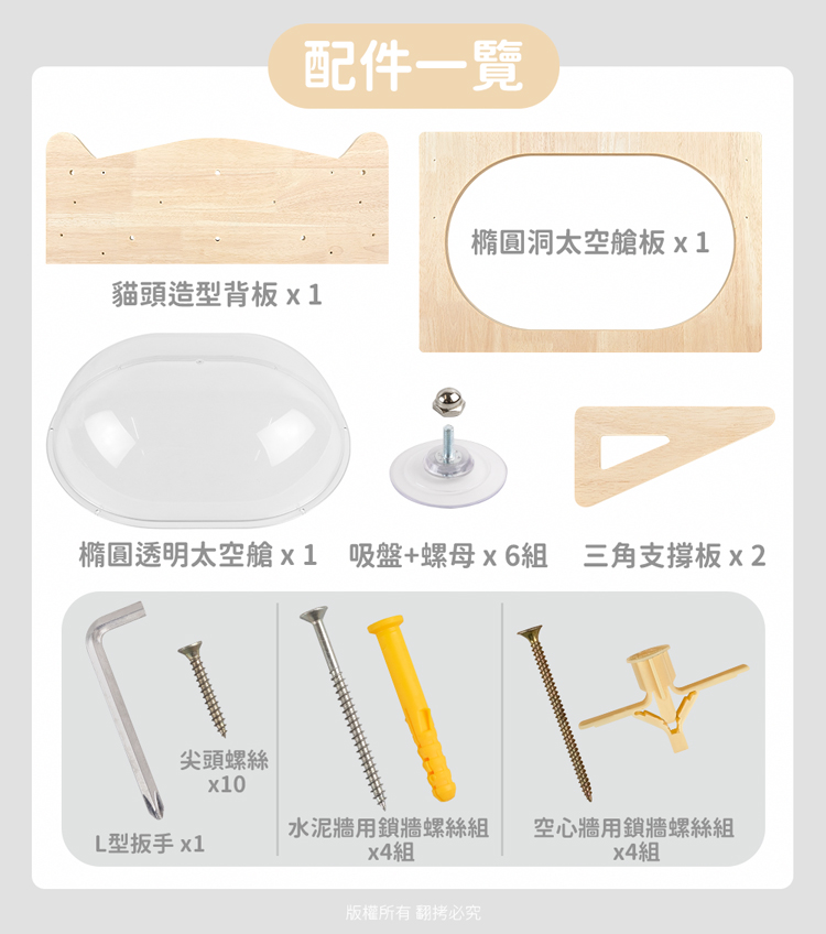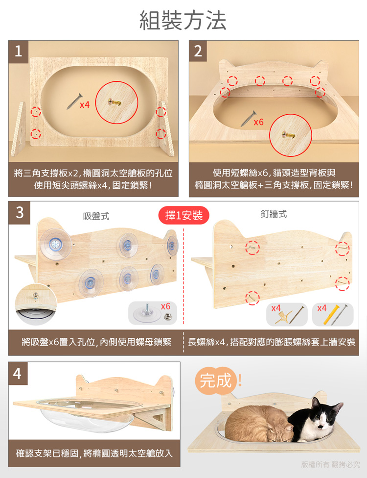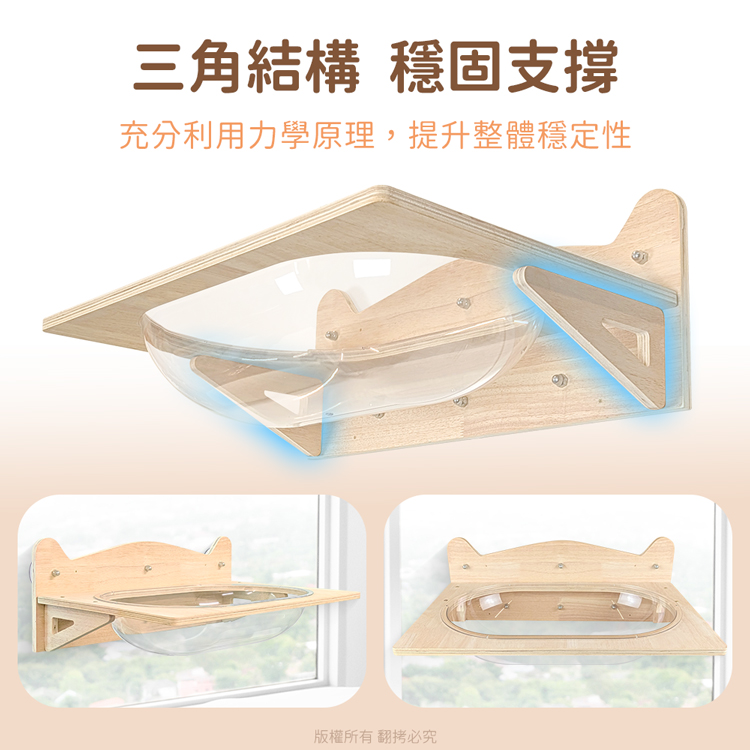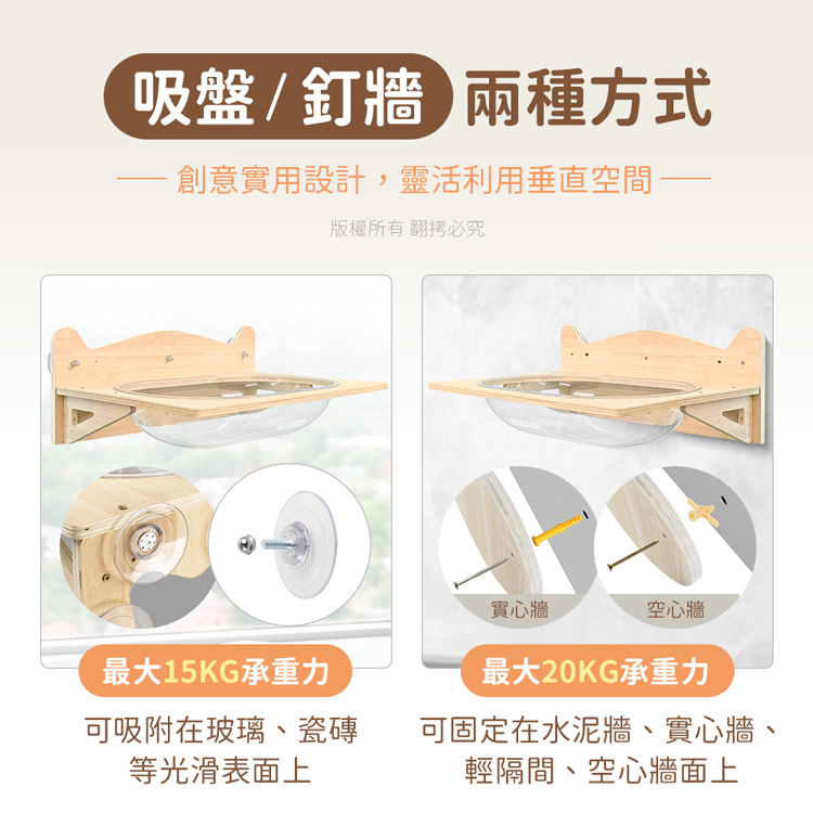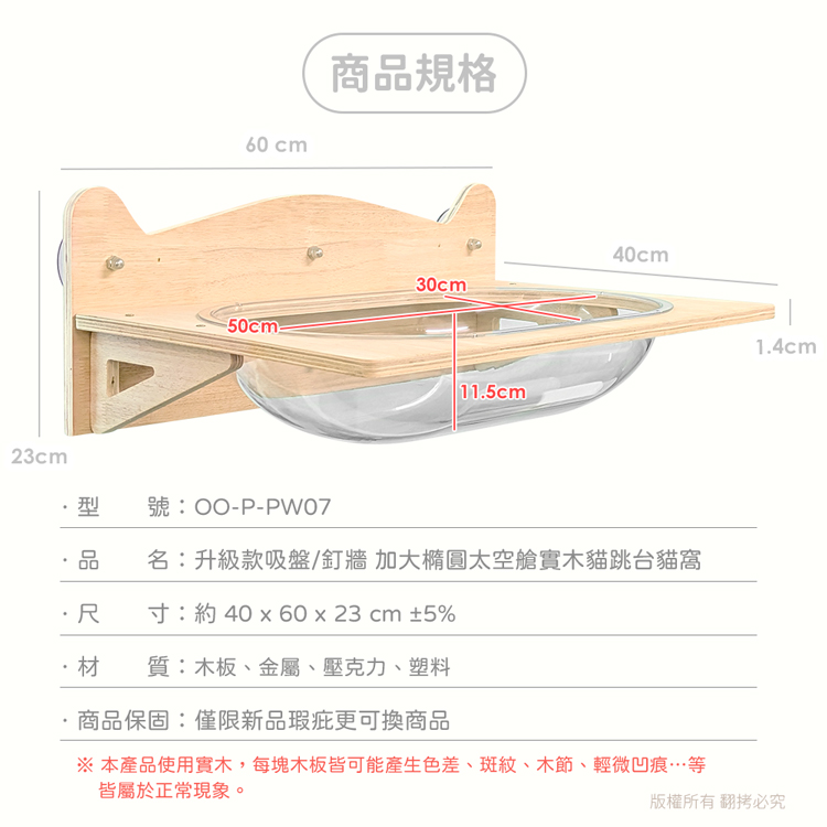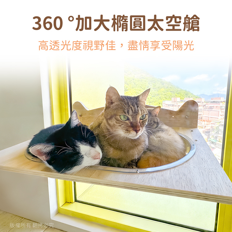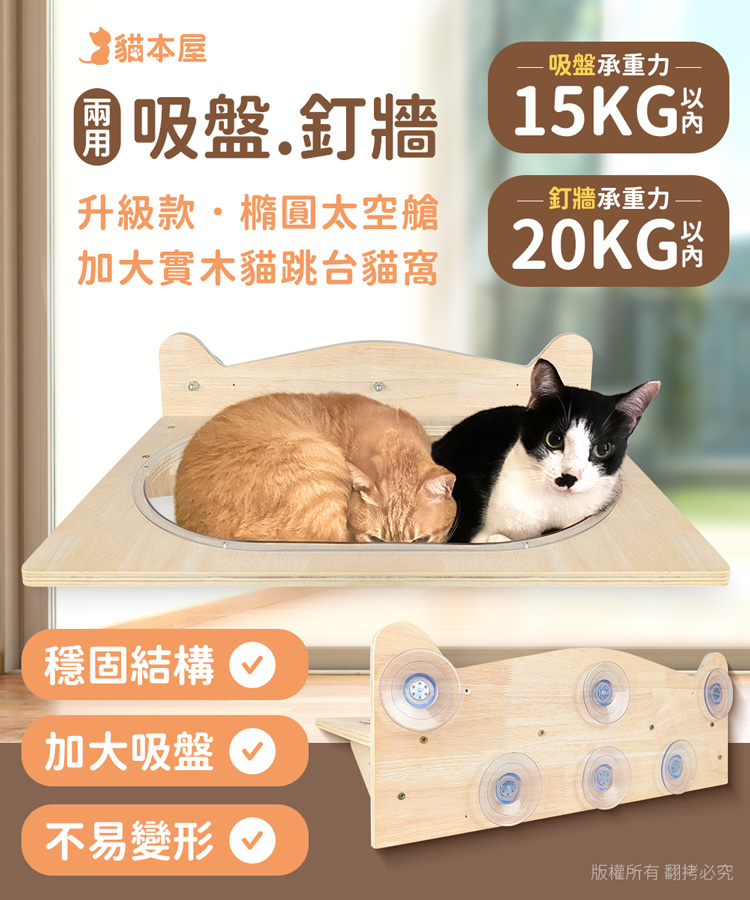 【貓本屋】吸盤/釘牆兩用 升級款加大橢圓太空艙實木貓跳台貓窩-OO-P-PW07