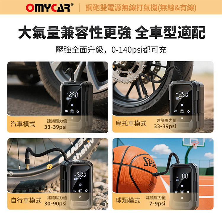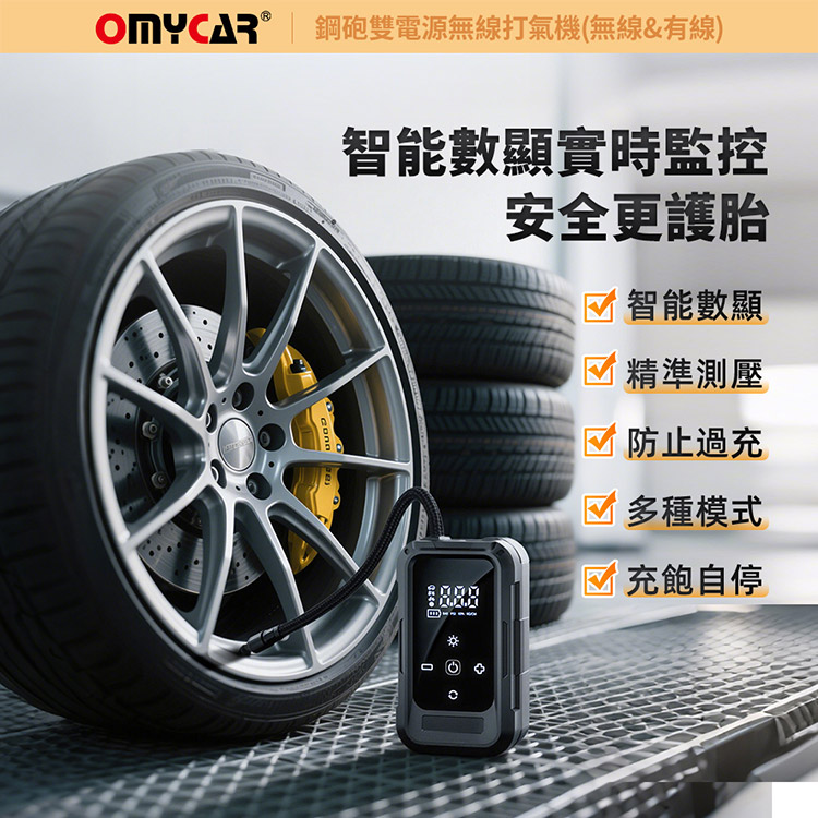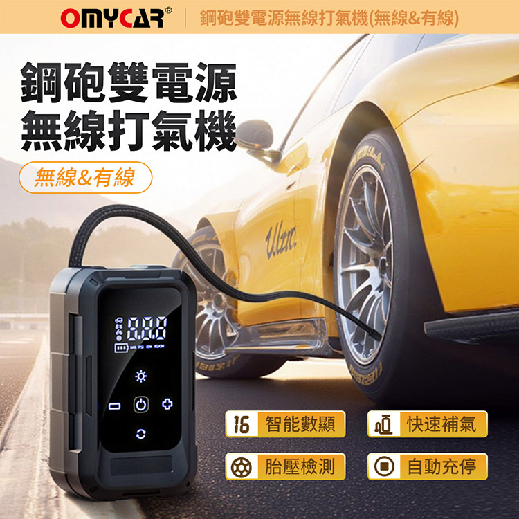 【OMyCar】鋼砲雙電源無線打氣機(無線&有線)汽車打氣機 輪胎打氣機 胎壓檢測