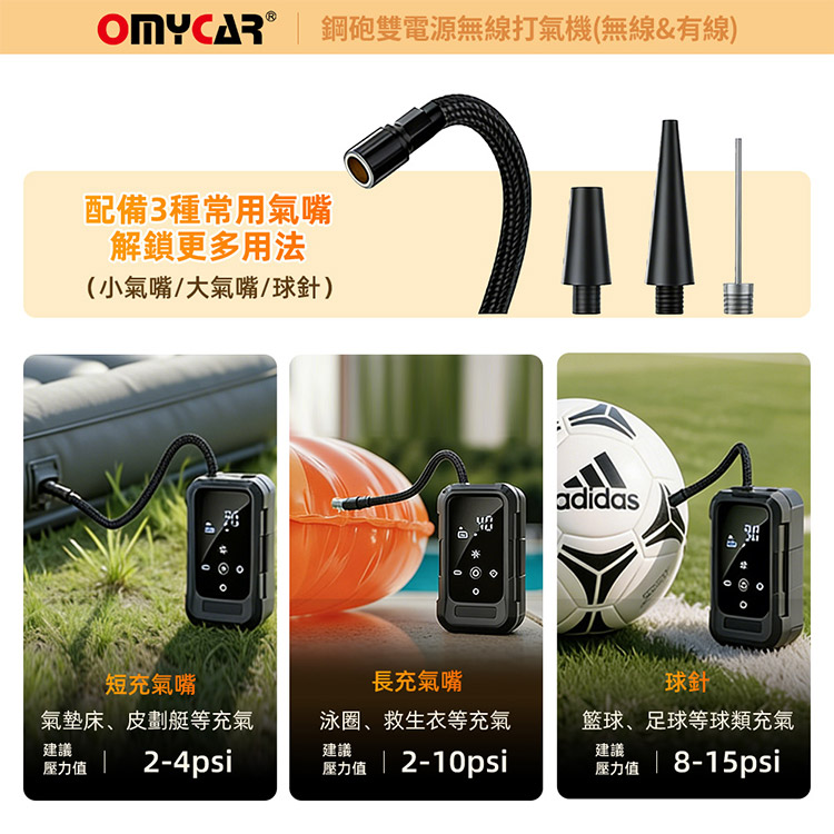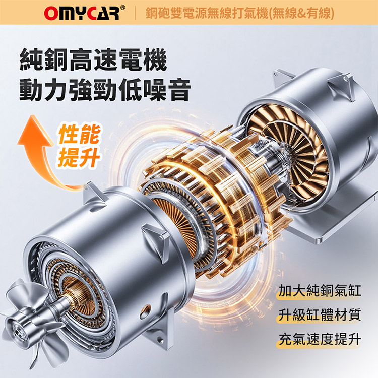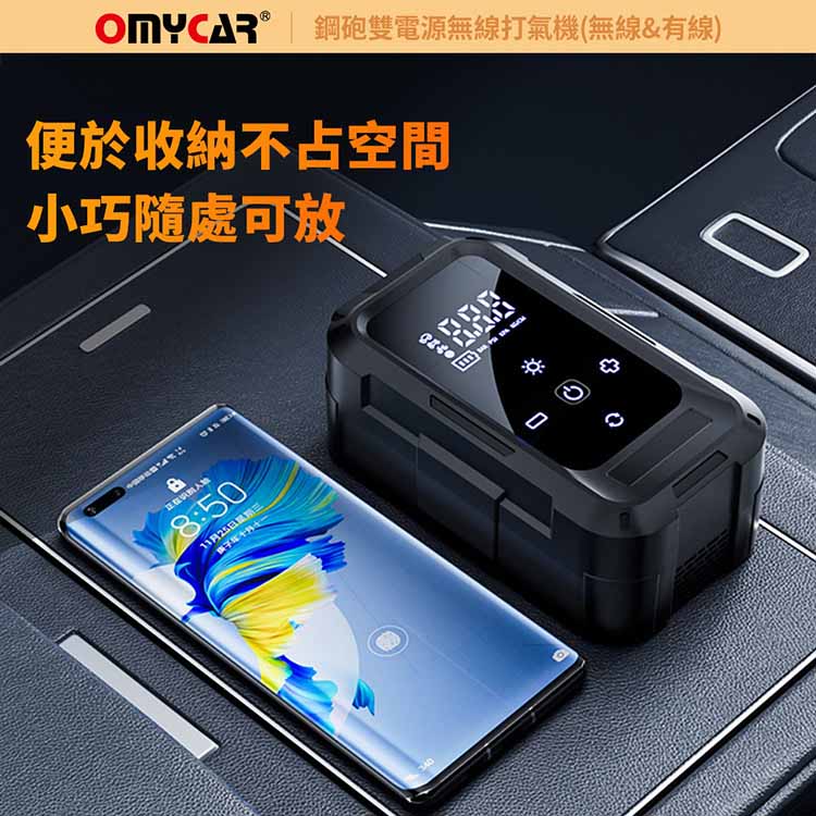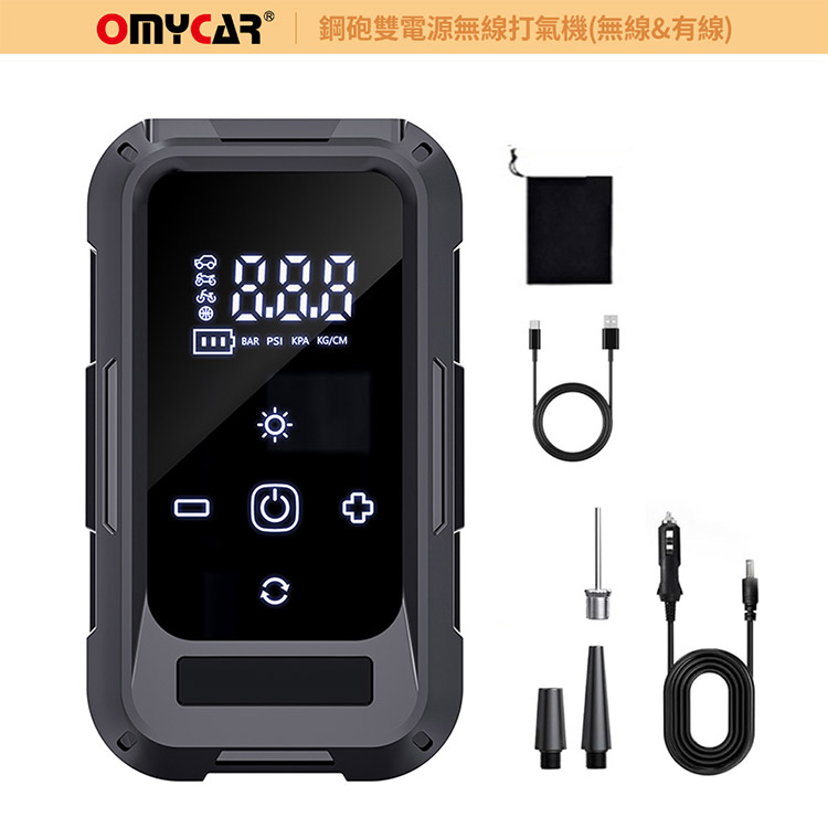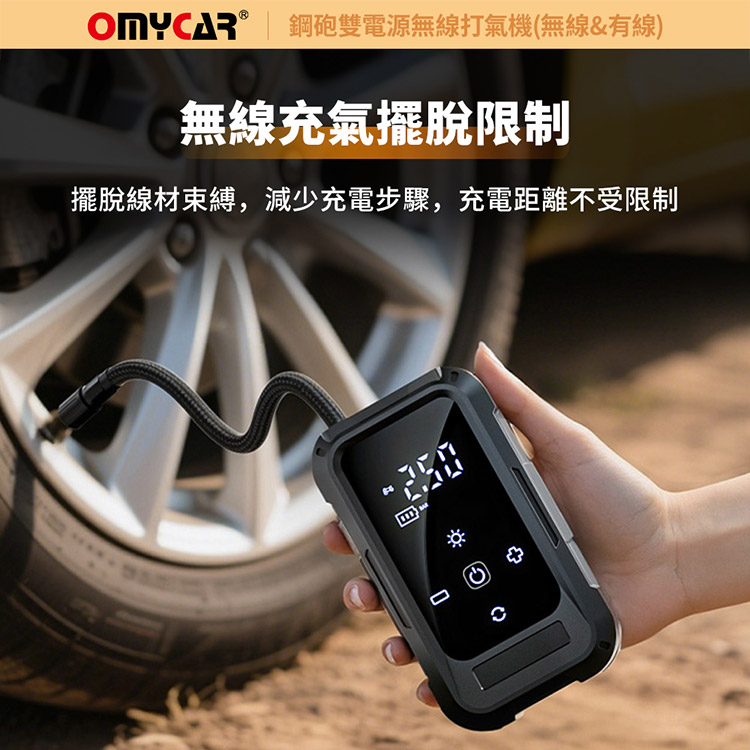【OMyCar】鋼砲雙電源無線打氣機(無線&有線)一年保固 (汽車打氣機 輪胎打氣機 胎壓檢測)