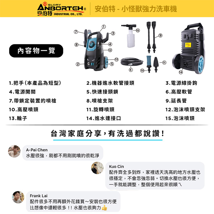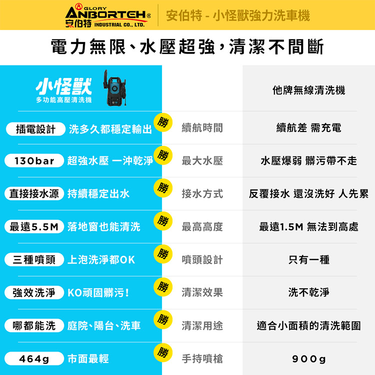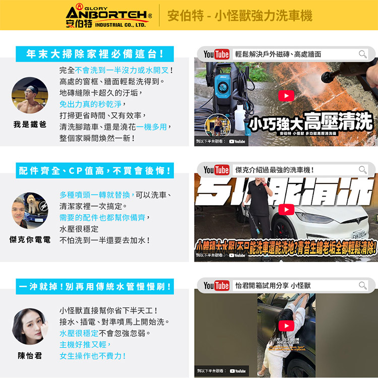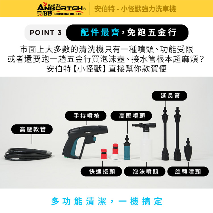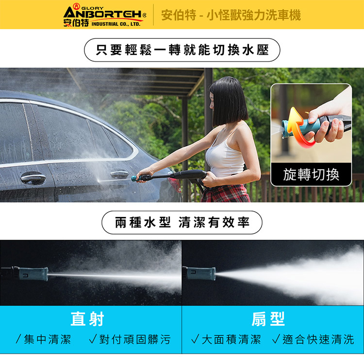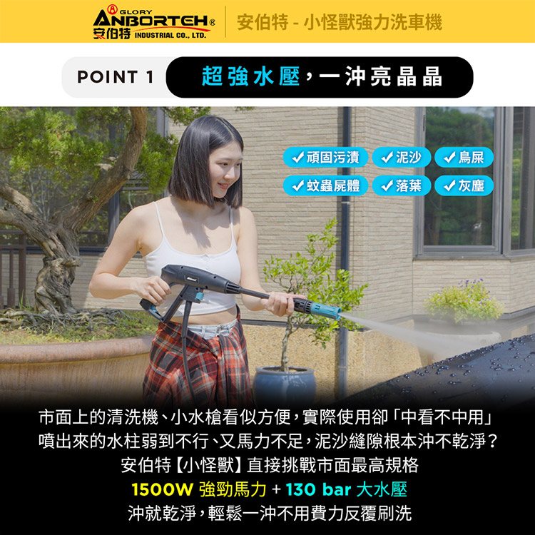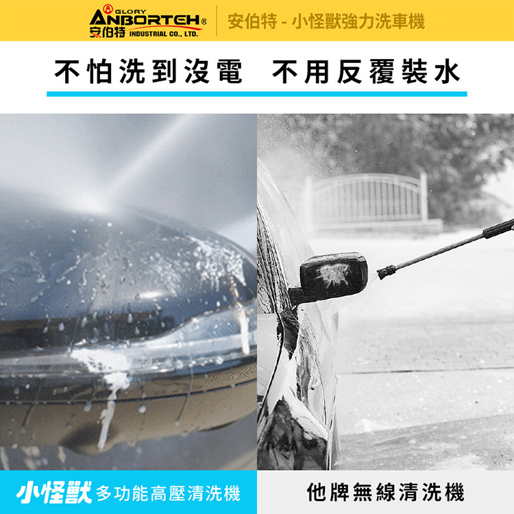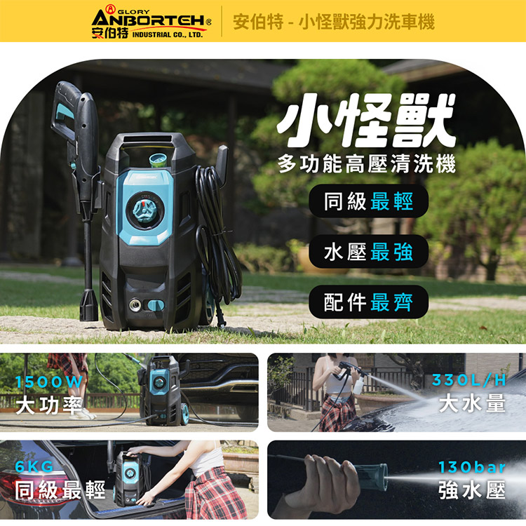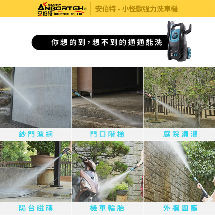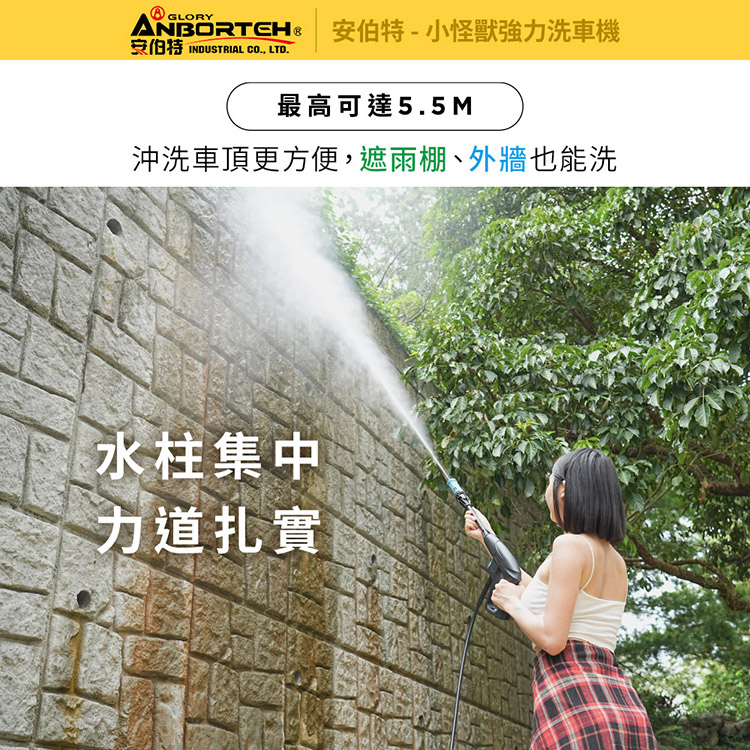 【安伯特】小怪獸強力洗車機(一年保固) 多功能高壓清洗機 車家兩用 灰塵淤泥 青苔汙垢 鳥屎髒汙 沖洗車頂 遮雨棚 外牆
