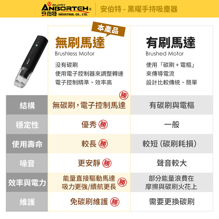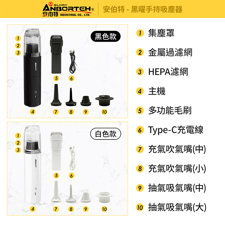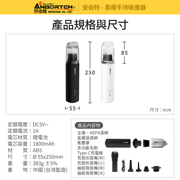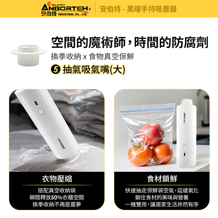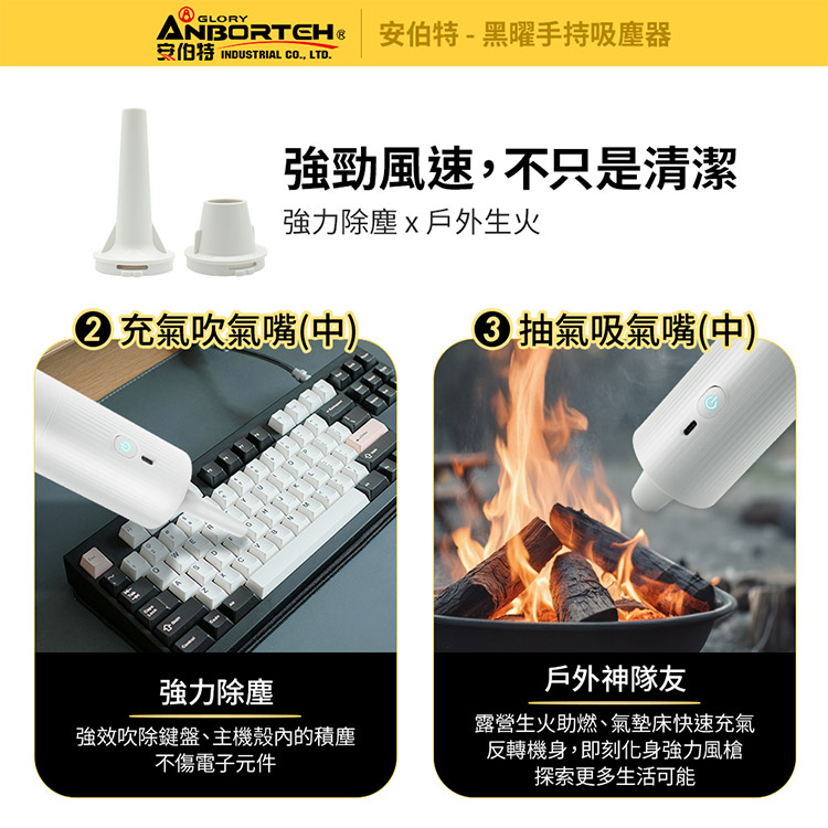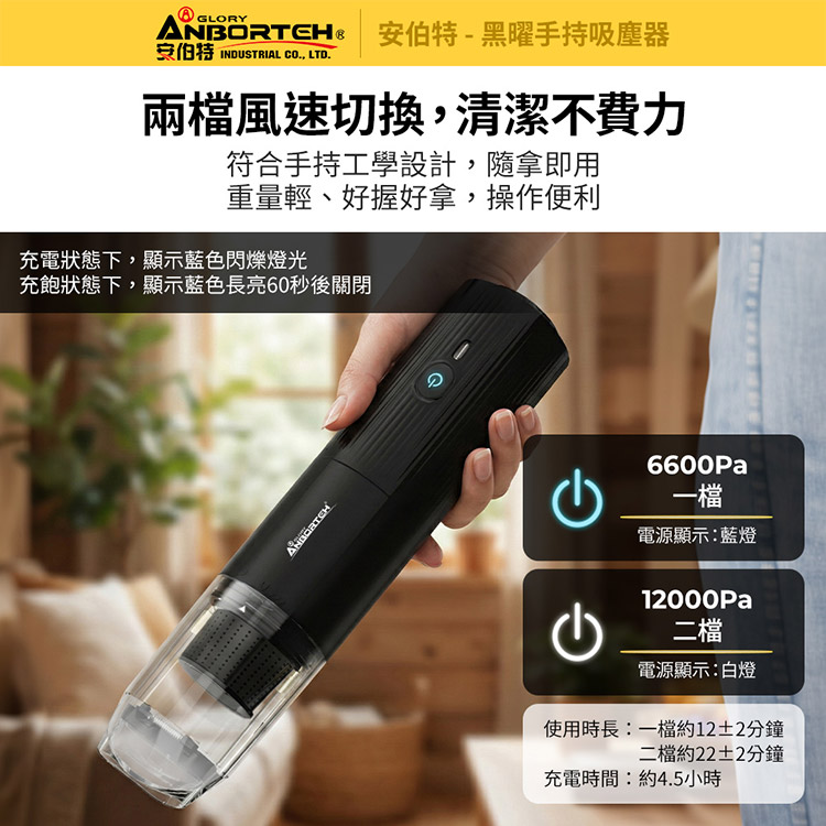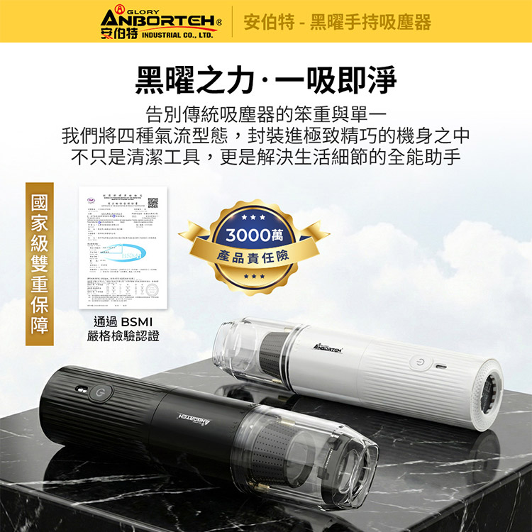 【安伯特】黑曜手持吸塵器(國家認證 一年保固) 無線吸塵器 無刷電機 吸充吹抽四合一 除塵 抽真空 車家兩用