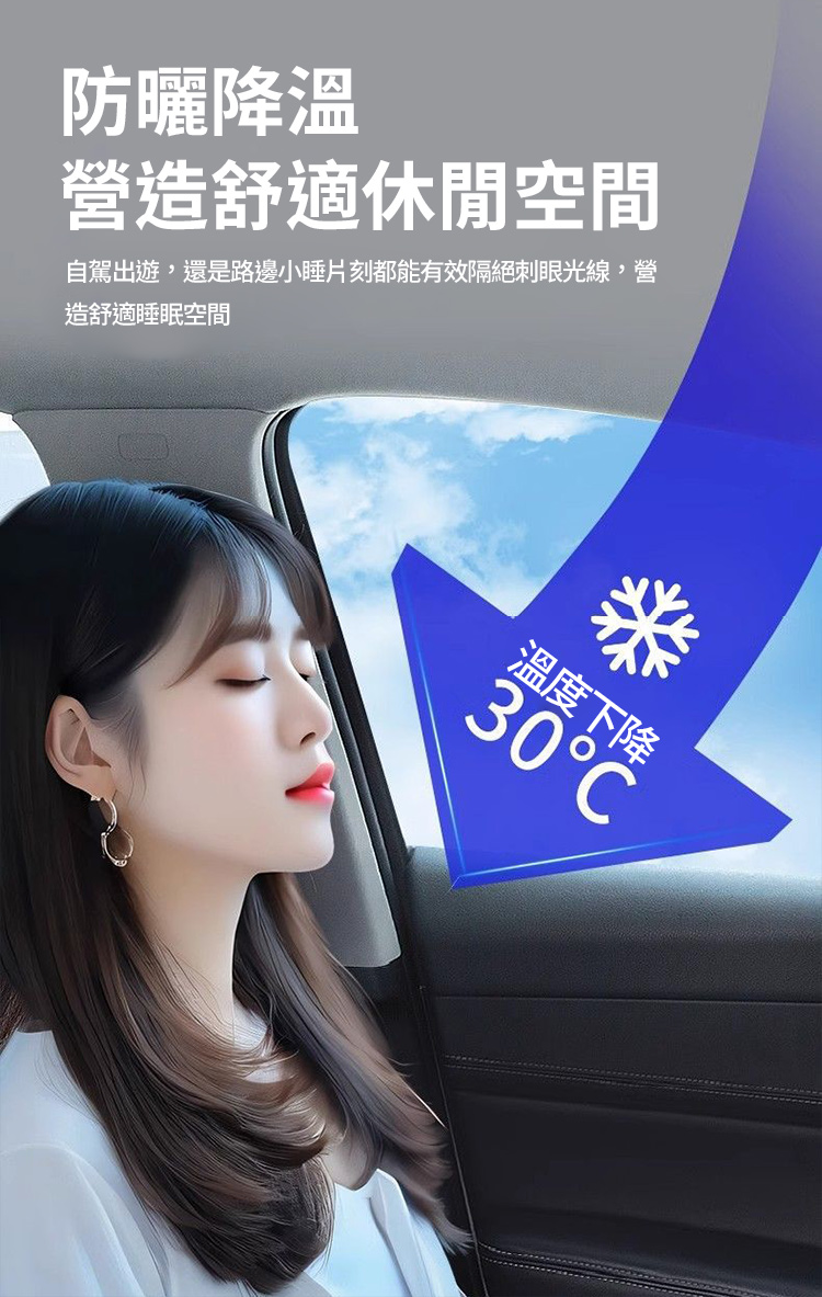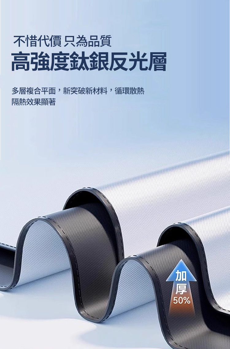 ● 1秒安裝立刻遮陽● 收納輕鬆折疊快速● 完全遮擋密不透光● 防曬吸熱冰晶鎖溫