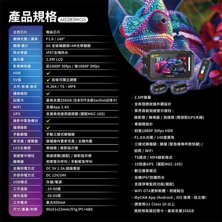 品名:【Polaroid寶麗萊】MS283WGS機車行車記錄器