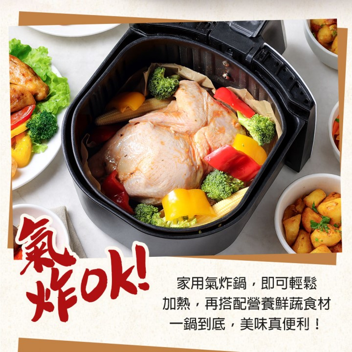 食用方式:解凍後,【氣炸鍋】180°C 約25~30分鐘(中途翻面)【烤箱】180°C 上下火 40~45分鐘【電鍋】外鍋加2杯水蒸熟(口感偏嫩)【戶外炭烤】烤到表皮金黃酥脆超香!注意事項:本公司產品生產、儲存、運送均採低溫處理,商品請勿反覆解凍食用。