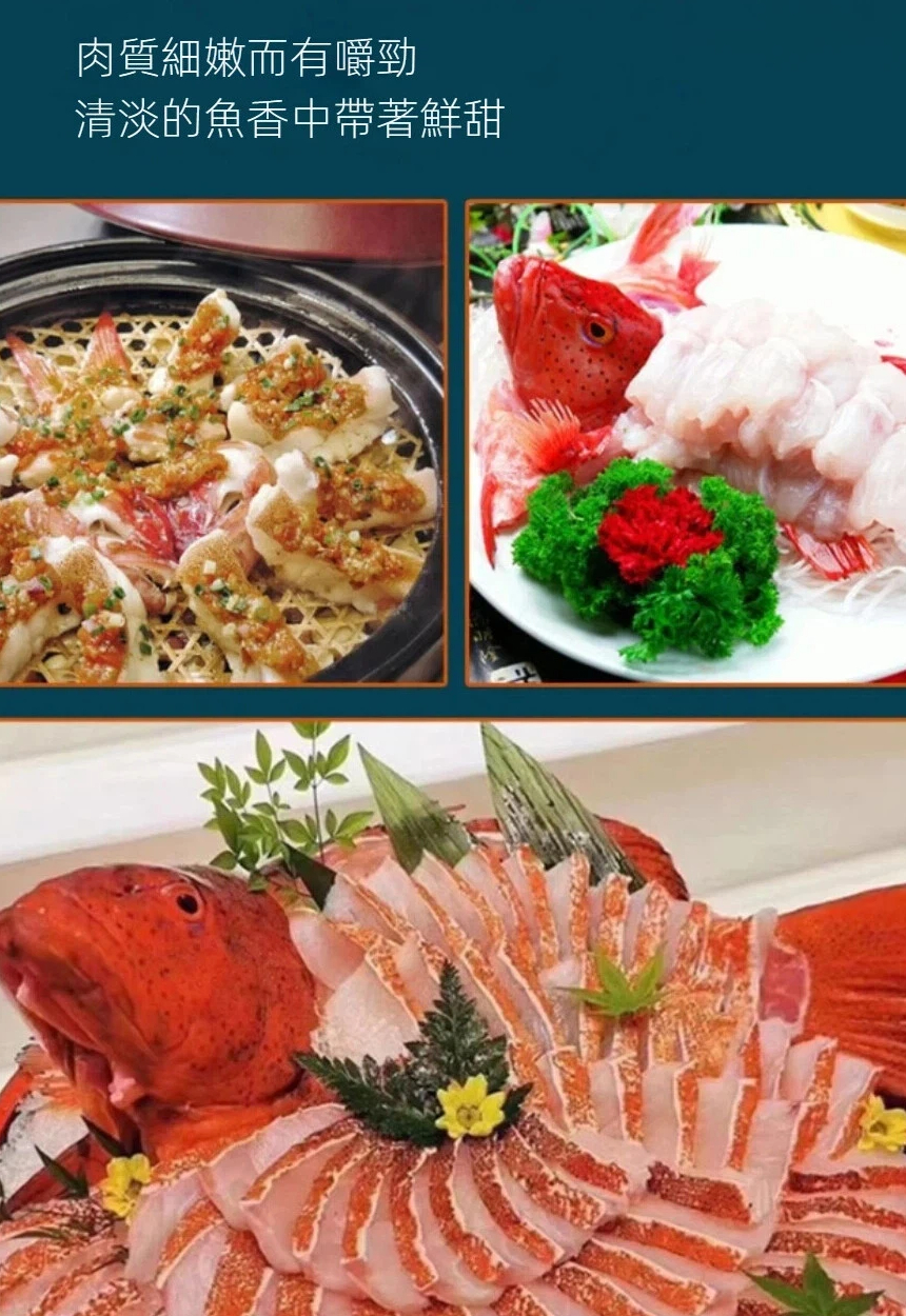 約450克左右/1尾(三去後淨重),適用於清蒸,充分加熱後即可食用,頂級燕尾紅條肉質非常細膩、清甜,沒有一絲絲海魚的腥味,無可挑剔的頂級口感
