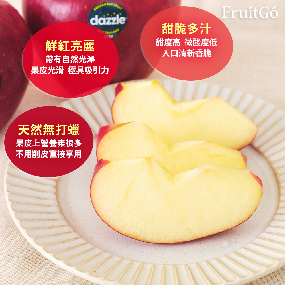 Dazzle擁有亮麗的紅色外衣,像滿天星斗畫在蘋果皮上,閃閃星光,紐西蘭新研發的蘋果品種-Dazzle 結合了眾多精華!一吃就會征服你的味蕾!生長於純淨的紐西蘭,天然無打蠟!紐西蘭氣候非常適合種植蘋果,日照及降雨充裕,早晚溫差大,加上純淨的水源,讓紐西蘭成為世界上最棒的蘋果故鄉之一。因環境純淨,蘋果無打蠟可連皮吃,讓您更安心。美味亦是舉世聞名。☀️保存 | 建議冷藏,提早享用脆度較佳