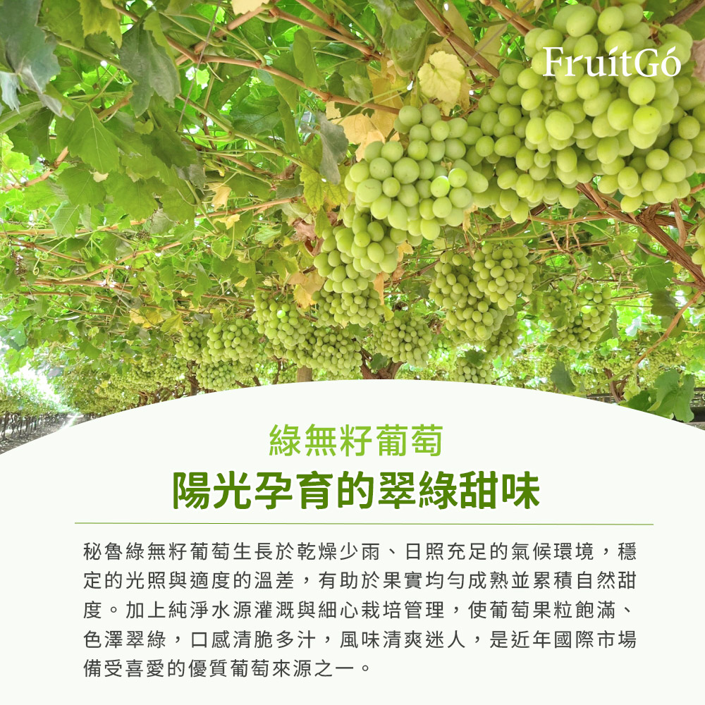 皮薄脆口,果實飽滿 秘魯擁有肥沃土壤及溫暖氣候,四周擁有海洋、沙漠與高山,氣候宜人。相當適合種植葡萄,也因此秘魯的葡萄產區幅員遼闊。綠無籽葡萄香甜多汁,皮薄清脆、果肉飽滿,洗淨即可吃。帶著獨特的花果香,無籽的葡萄方便食用!大人小朋友都喜愛。果大、脆口、甜度高!綠無籽葡萄外表翠綠,果粒碩大飽滿。採收時的甜度極高,無籽多汁,脆甜飽滿的果肉帶有淡淡麝香香氣!入口幾乎感覺不到果皮。種種特點讓這個品種一產出即受各國市場、各個消費者喜愛。雖然綠無籽外觀看起來大同小異,但其實有相當多品種我們選以下幾種口感好的品種出貨:◎ 秋脆 Autumn Crisp: 帶有麝香、放幾天後果身轉黃麝香味更濃◎ 甜地球 Sweet globe: 果身圓、大果◎ 糖滴 Sugar Drop: 果身為漂亮長型,像糖滴,是葡萄界的美女◎ 糖脆 Sugar Crunch: 果身長、甜度高世界上最受歡迎的葡萄品種之一新品種「秋脆」綠無籽葡萄於2009年發表,秋脆葡萄外表翠綠帶黃,果粒碩大飽滿。採收時的甜度極高,無籽多汁,脆甜飽滿的果肉帶有淡淡麝香香氣,入口幾乎感覺不到果皮,種種特點讓這個品種一產出即受各國市場、各個消費者喜愛。2012年開始大量種植,產區橫跨南北半球。澳洲秋脆葡萄比其他產區偏黃些。喜歡甜度高的朋友,可以在冰箱多放幾天,葡萄會繼續轉黃,且麝香會更加明顯。☀️ 保存|冷藏,最佳賞味期14天。☀️ 低溫熟成,喜歡甜的朋友可以等葡萄轉淡鵝黃色時享用,甜度較高。☀️ 依據產季切換品種出貨。產季重疊時,依照當天到貨,篩選品質最好的出貨。