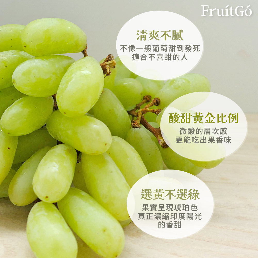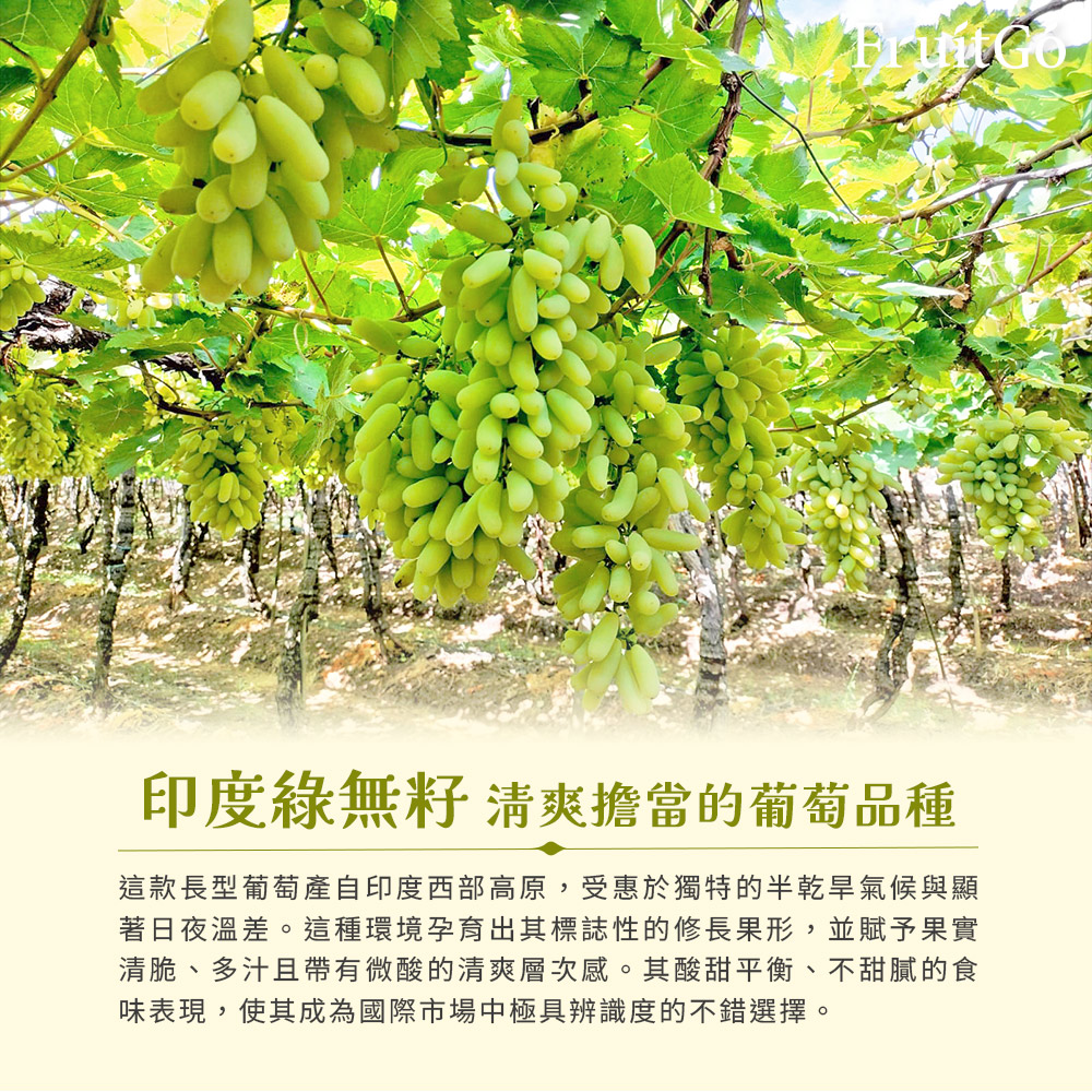 — India Seedless Grape —推薦不喜歡太甜的朋友產地|印度 <二月~五月>規格|每袋約 700克±10%
