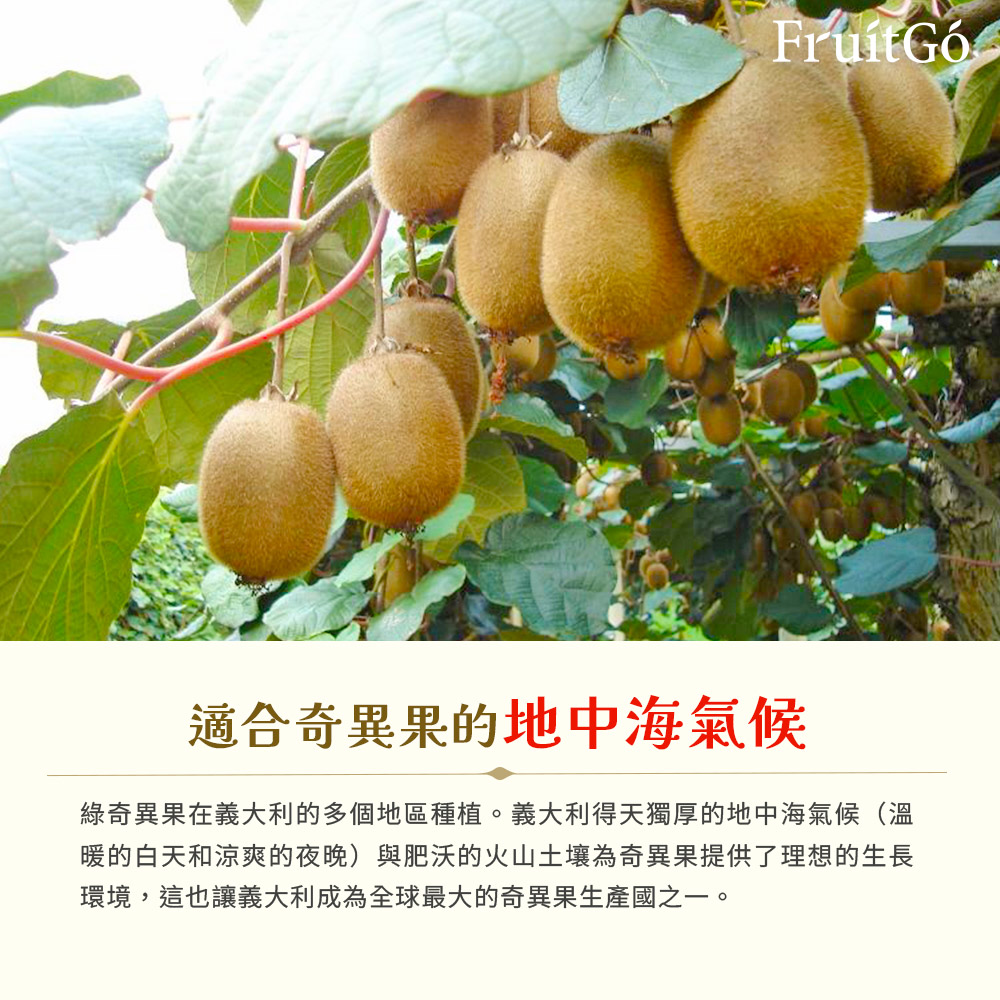 紐西蘭、義大利,稱霸南北半球奇異果重要產地一般熟知的奇異果產地是紐西蘭,每年 5 月 - 12 月是紐西蘭奇的主要產季當南半球的紐西蘭步入夏天(12 月- 隔年 4 月)奇異果的主要產地就會變成義大利、法國。得天獨厚的氣候和土壤環境讓義大利成為奇異果的重要出口國之一!奇異果富有豐富的維他命C,外皮光滑果皮薄透、外型渾圓、果肉Q彈多汁美味!不論是出門野餐、辦公室切開即食~是大人小朋友都喜歡的香甜水果!挑選奇異果的秘訣❶ 表面絨毛完整,外皮無斑點❷ 蒂頭呈現鮮嫩的色澤❸ 用手輕握時稍軟、有彈性是最好吃的喔!